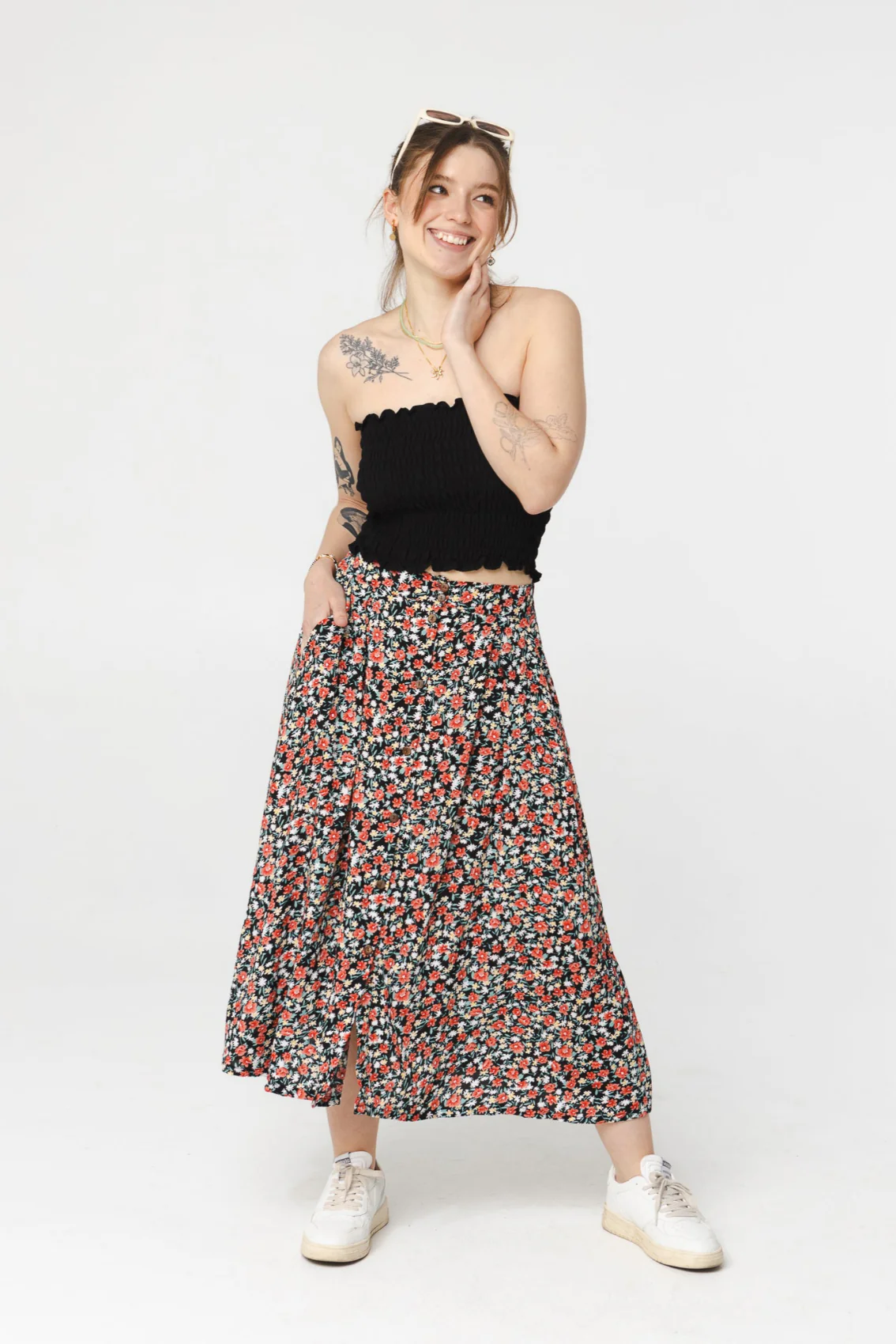 Meilleur vendeur. Jupe midi avec taille élastique boutonnée à l’avant.