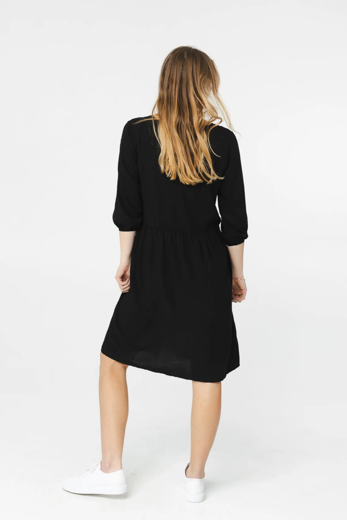 Robe noire très fluide et extrêmement pratique à manches 3/4, de longueur midi.