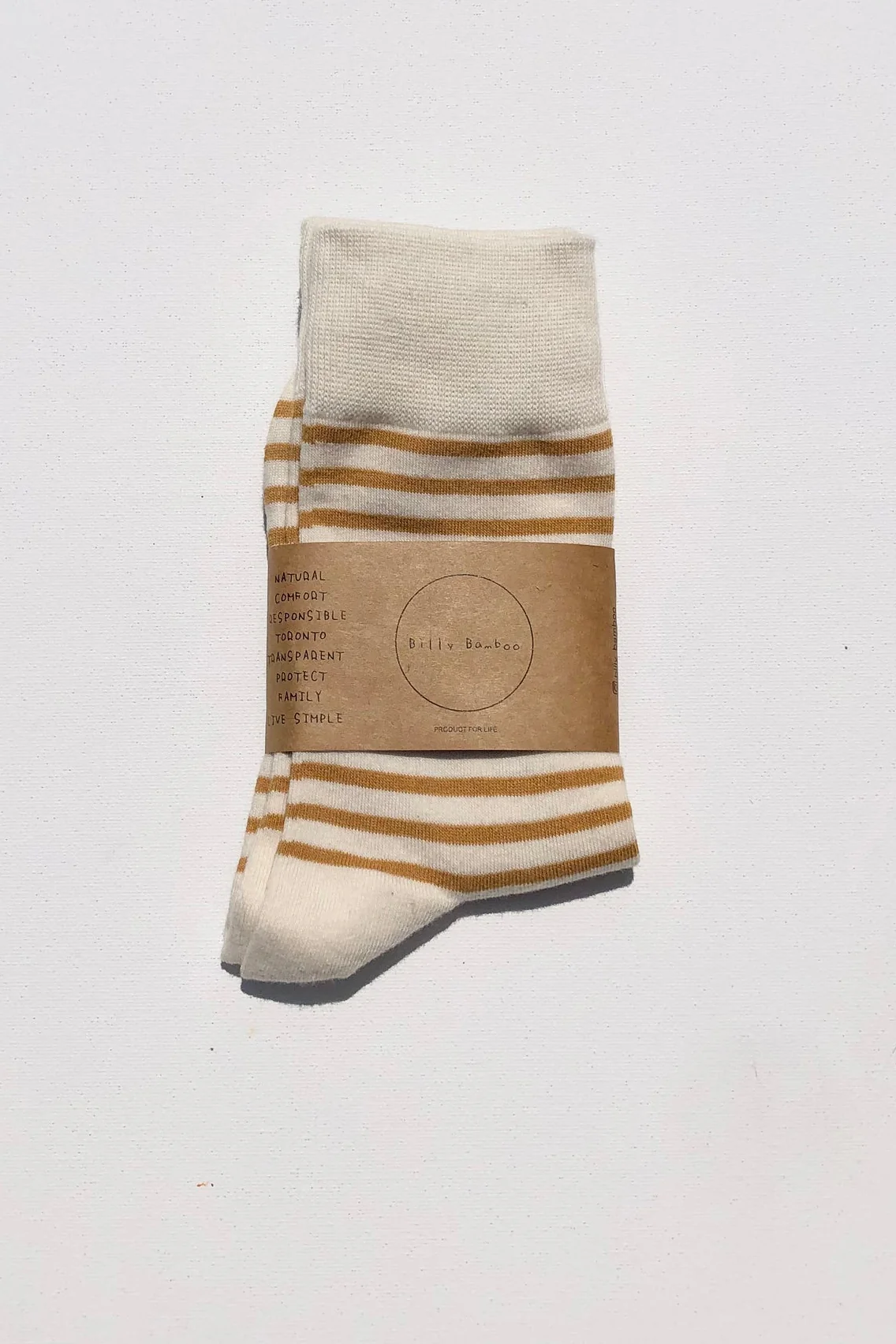 Un indispensable moderne empreint d’authenticité, la chaussette Billy Bamboo Stripe s’inspire de l’élégance intemporelle des rayures bretonnes, portées à l’origine par les marins français puis adoptées par les artistes et les icônes de style. Réinventée dans notre mélange de coton doux et respirant, chaque paire allie charme classique, confort au quotidien et grande résistance. Avec des rayures moutarde, vert foncé, bleu marine, bordeaux, marron et noir, il y a une couleur pour chaque humeur et chaque occasion. Un véritable basique de votre garde-robe, conçu pour sublimer votre style en toute simplicité.