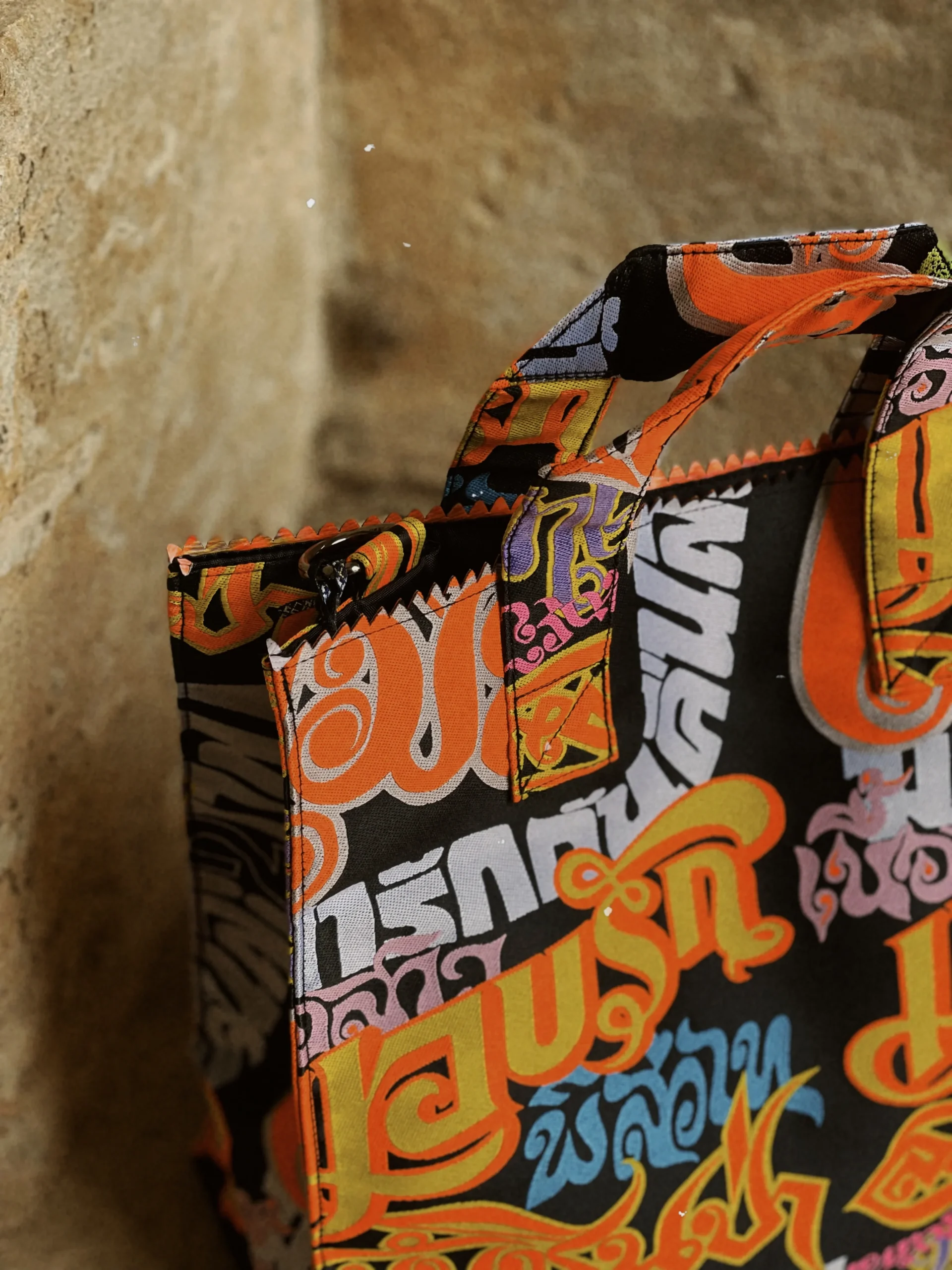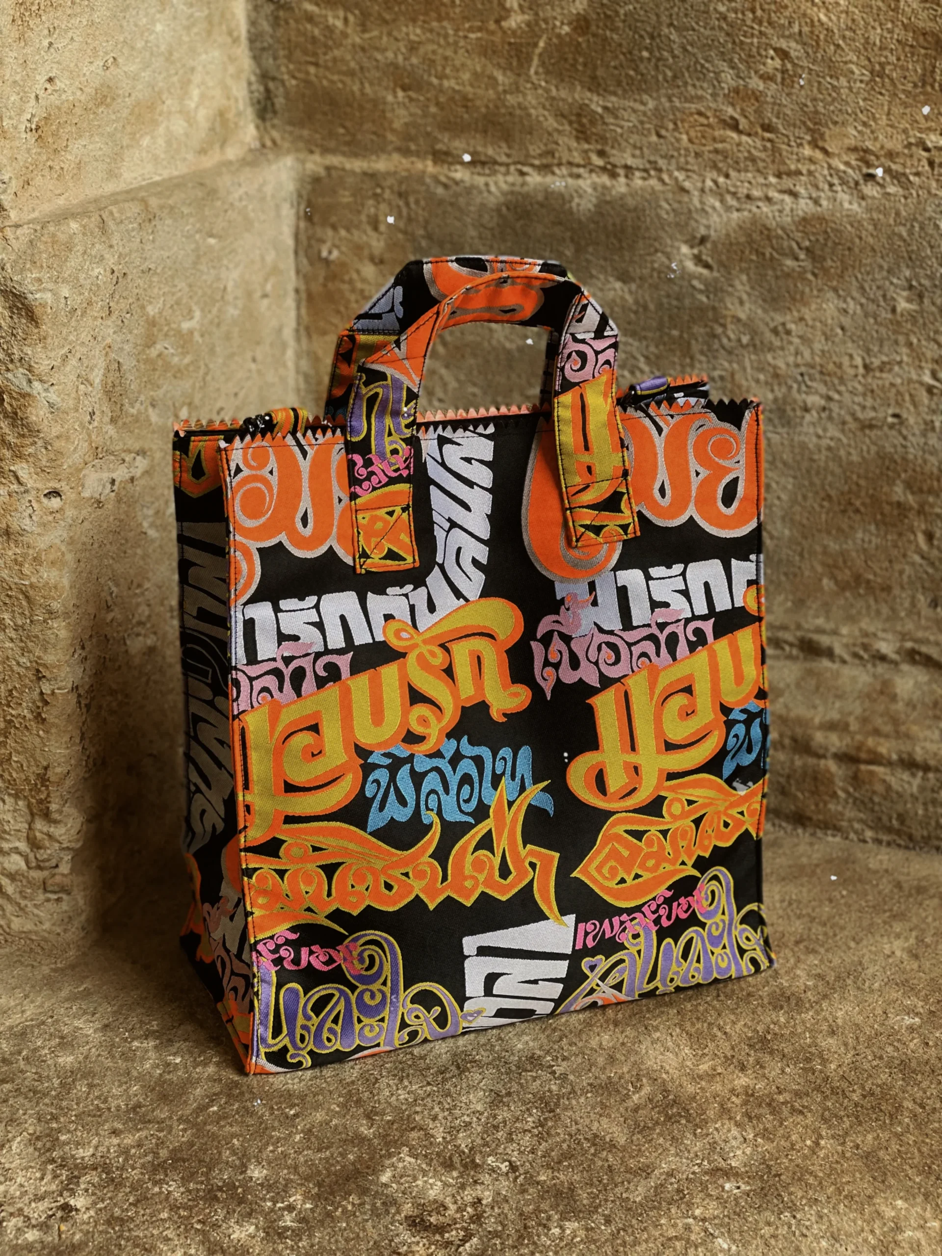 MODÈLE RARE DESIGNER PAR UN ARTISTE Matière : Tissage de fibres polyester recycléesDoublure : Revêtement imperméableCompartiments : 1 seul compartimentMotif / Couleur : Imprimé fluo et noirHauteur : 32 cmLongueur : 30 cmLargeur : 14 cmAnse/bandoulière : Présence d’une bandoulière réglable (14×12 cm)