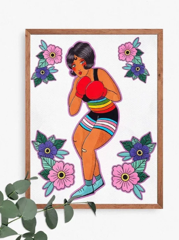 Création locale, faite avec amour, talent et passion à Montréal. Enfile tes gants de boxe et viens combattre les stéréotypes opressants et les injustices sociales! Cette illustration est aussi un clin d’oeil au style de tatouage traditionnel. Détails : Impression numérique couleur de haute qualité sur papier mat. Format 8,5 x 11 pouces Impression numérique […]