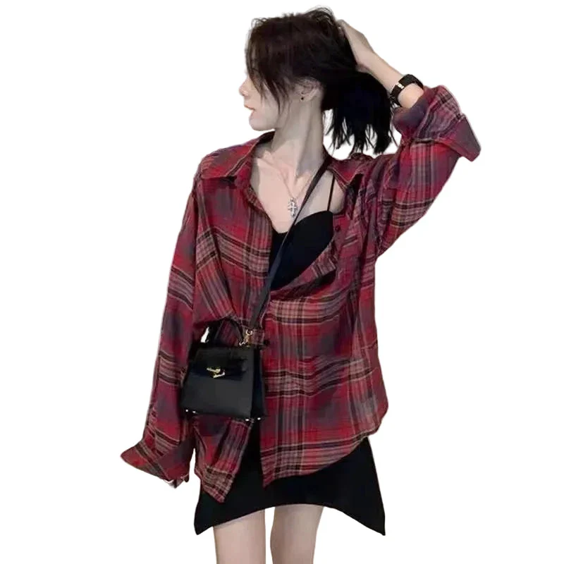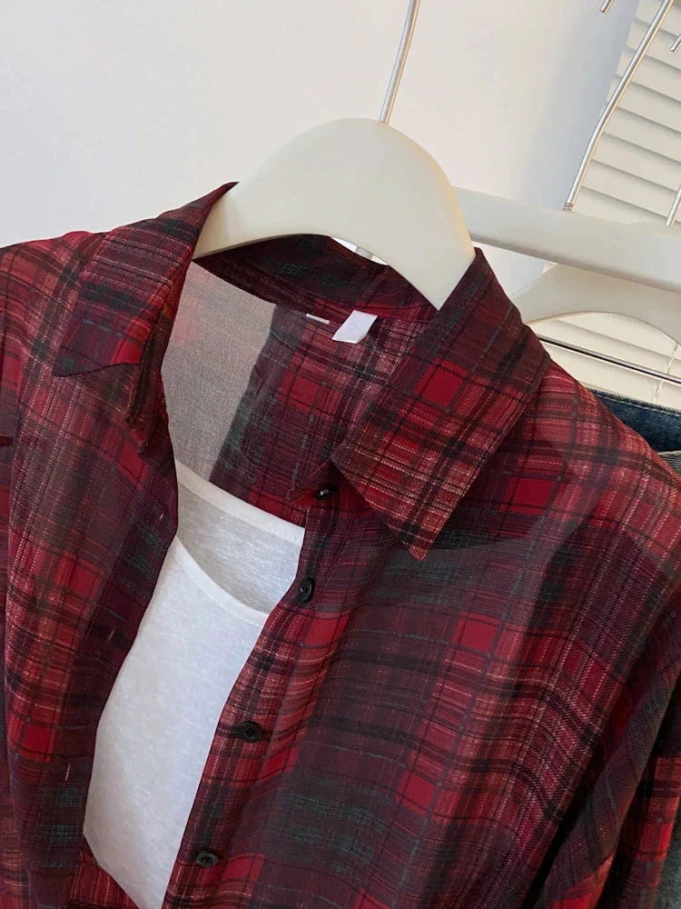Chemise de protection solaire à carreaux rouge et noir pour femmes — édition limitée