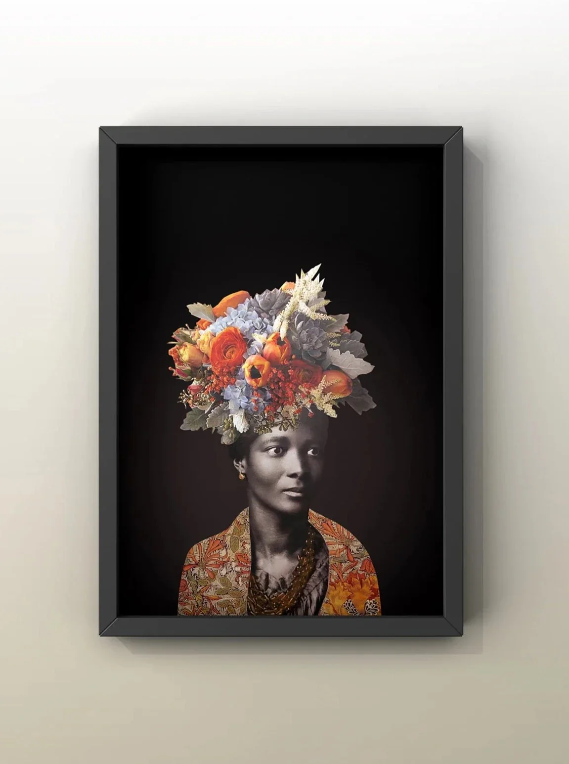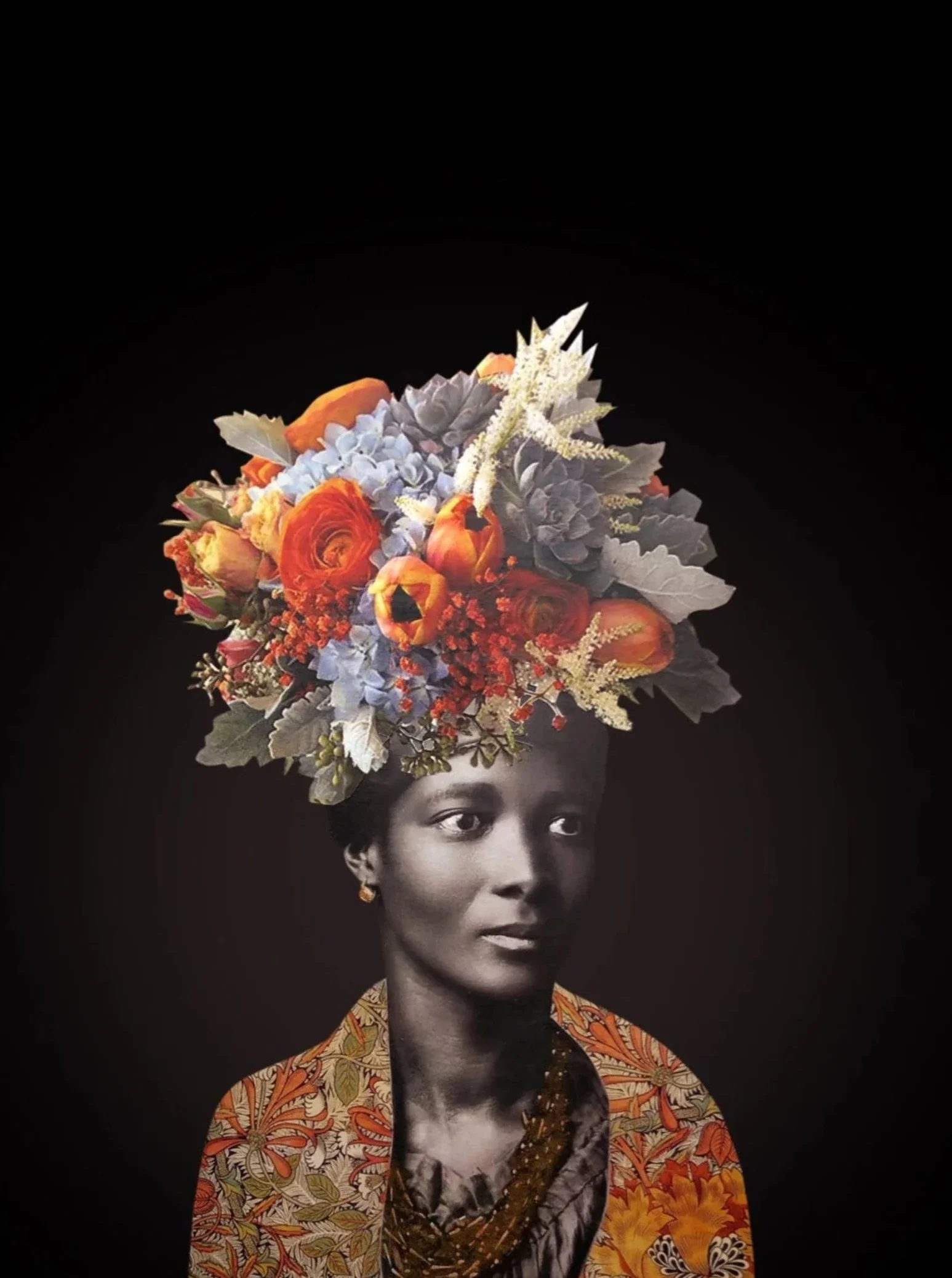 L’œuvre originale est un collage réalisé à partir d’une photo ancienne. Cette réalisation fait partie d’une série de tableaux représentant des femmes influentes de leur époque et inspirantes pour l’artiste.