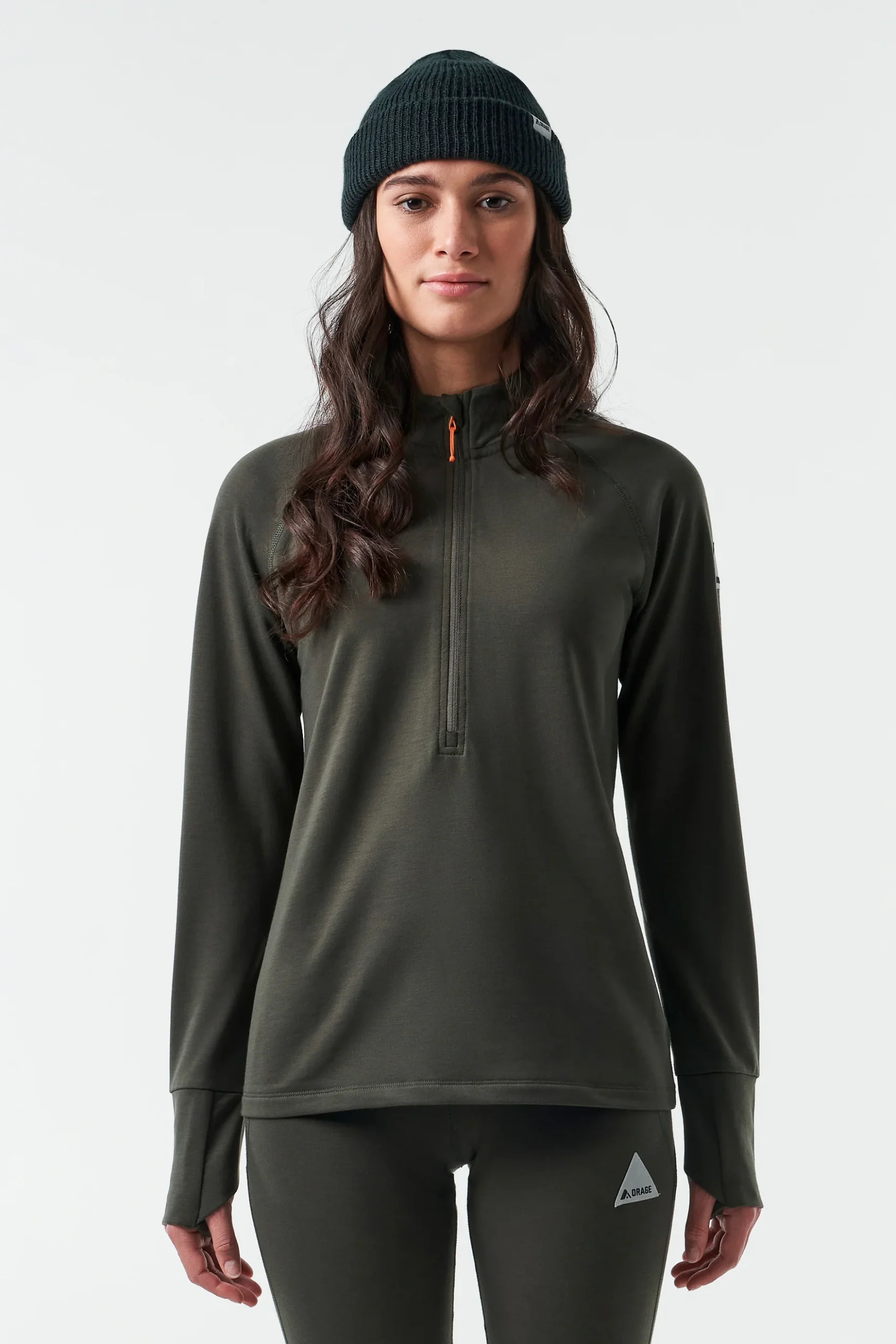 Né froid mais gardant la chaleur enfermée pendant vos déplacements, cette couche de base à demi-zip est plus épaisse que notre couche de base Moss pour femmes, elle vous gardera donc prête dès la naissance pour des sommets plus élevés, des vents plus forts et des aventures plus exaltantes.