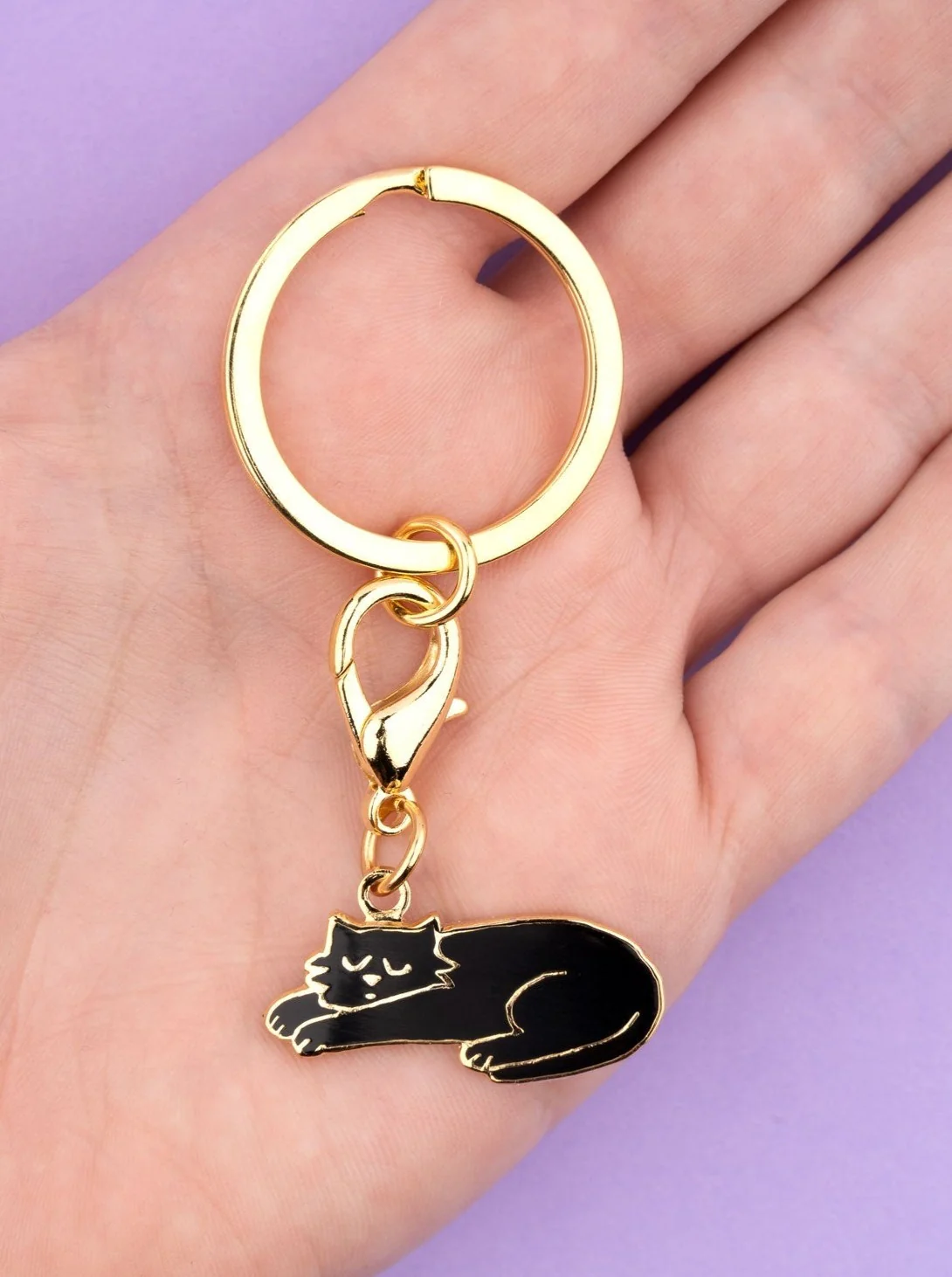 Un petit chat noir assoupi à la bouille relax pour veiller sur votre trousseau de clés.