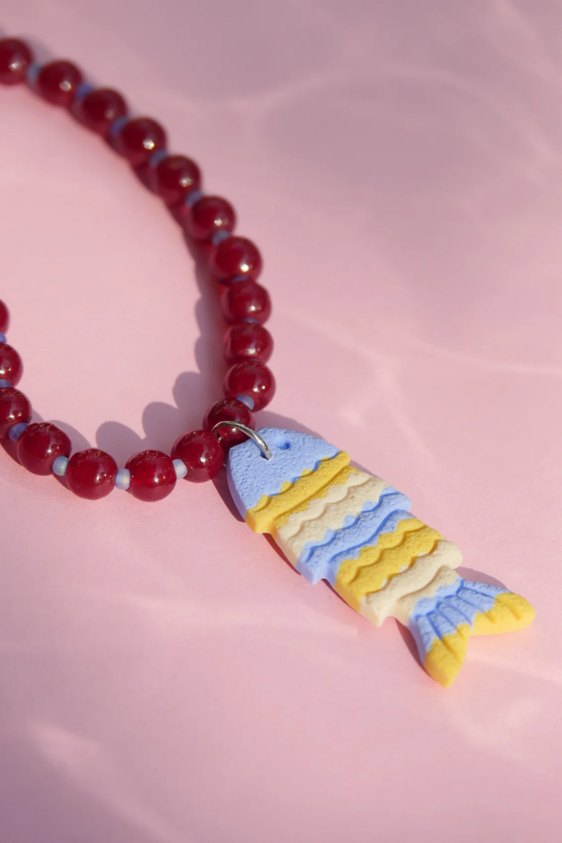 - Matériaux : argile polymère, anneaux & fermoirs en acier inoxydable, perles.