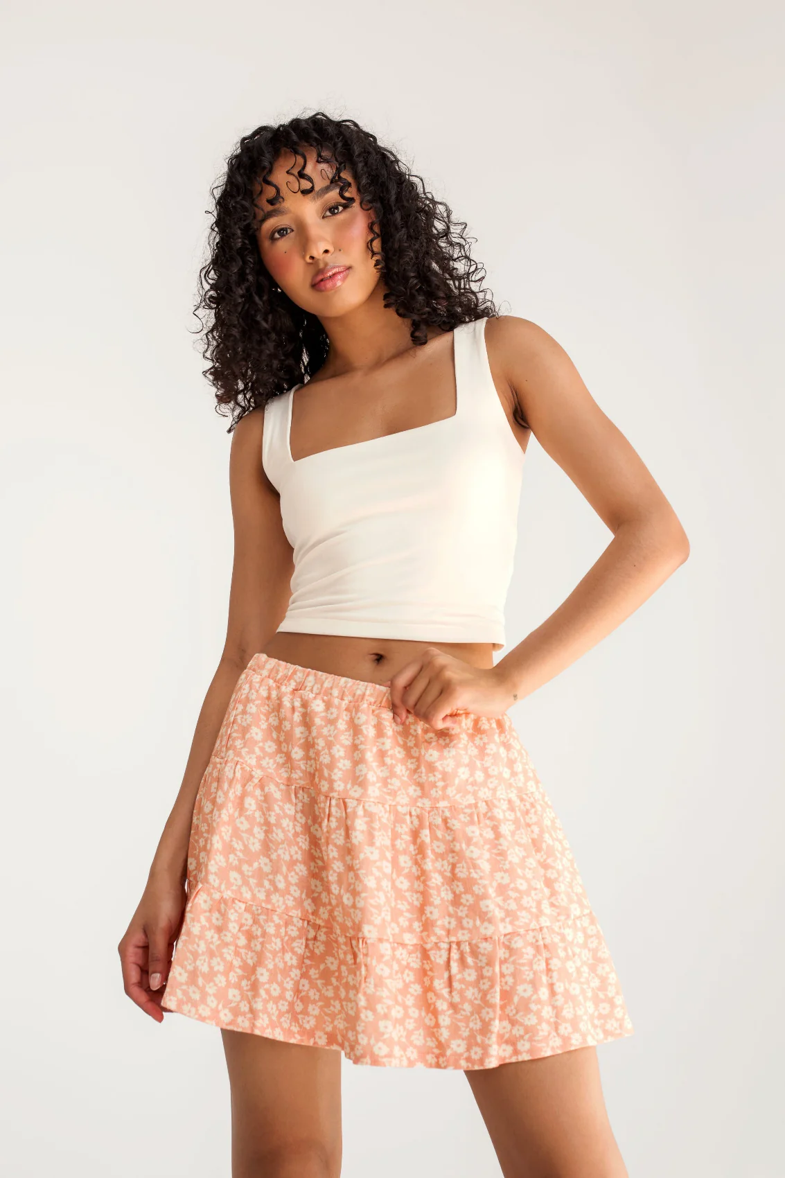 La coupe : Sa coupe fluide et légère fait d’elle une jupe parfaite pour les journées chaudes. Elle arrive à la mi-cuisse et sa taille élastique assure également un bon ajustement.