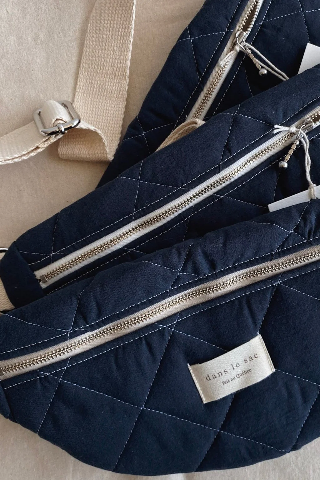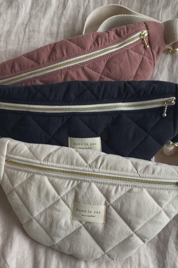 Ce sac banane est le plus beau qu’il existe! Fabriqué en tissu matelassé au Québec, il ajoute une touche de style à n’importe quel look, que vous soyez décontracté ou chic! Sa taille est parfaite pour ranger vos essentiels (portefeuille, clés, téléphone) sans vous sentir encombré. La ganse est ajustable pour s’adapter à différents types de corps. On ne peut plus s’en passer!