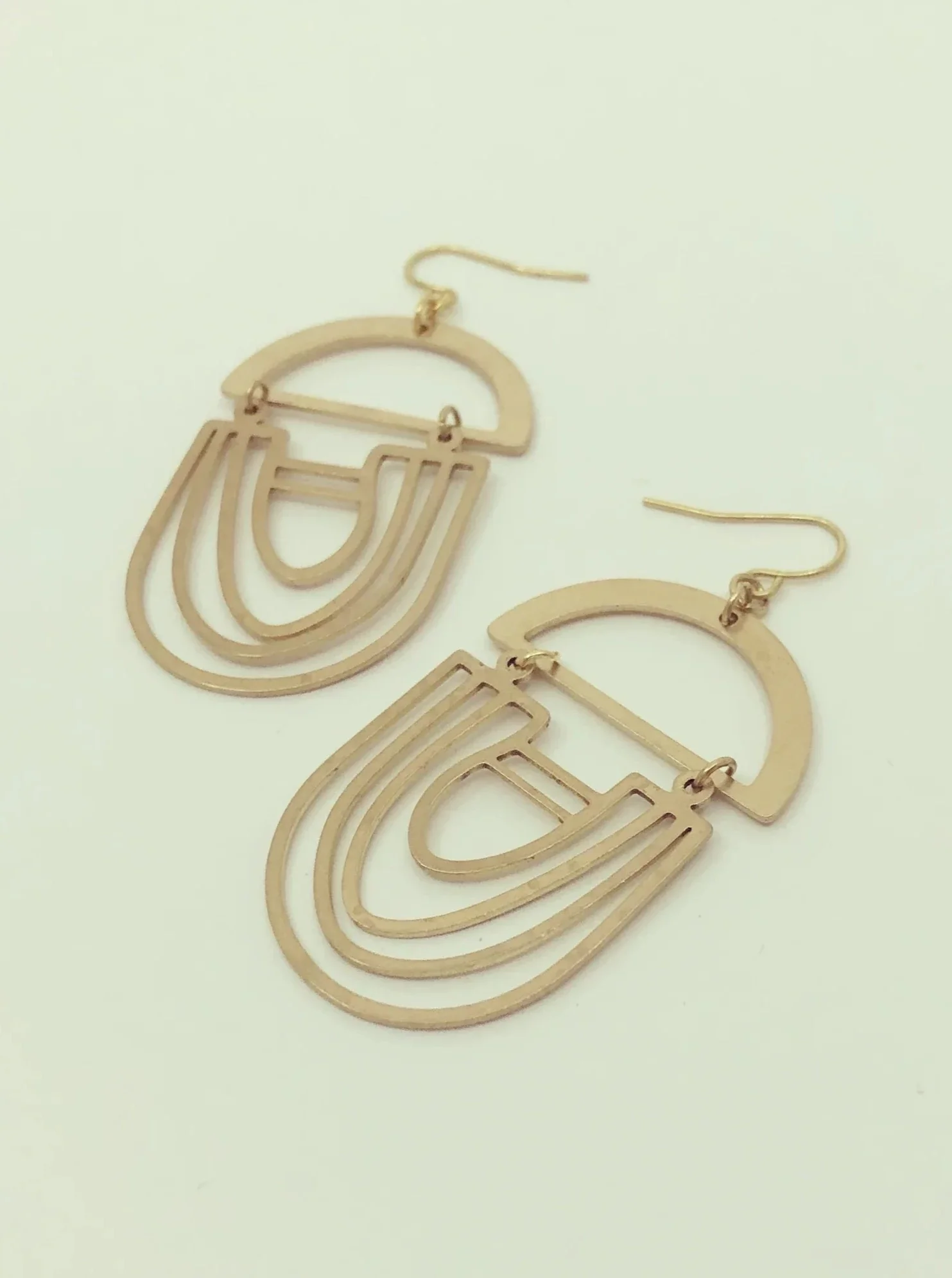 Fait avec amour, talent et passion à Montréal. Boucles d’oreilles pendantes géométriques. Composition : Laiton brut. Dimensions : 1 7/8” Longueur X 1 1/4″ Largeur
