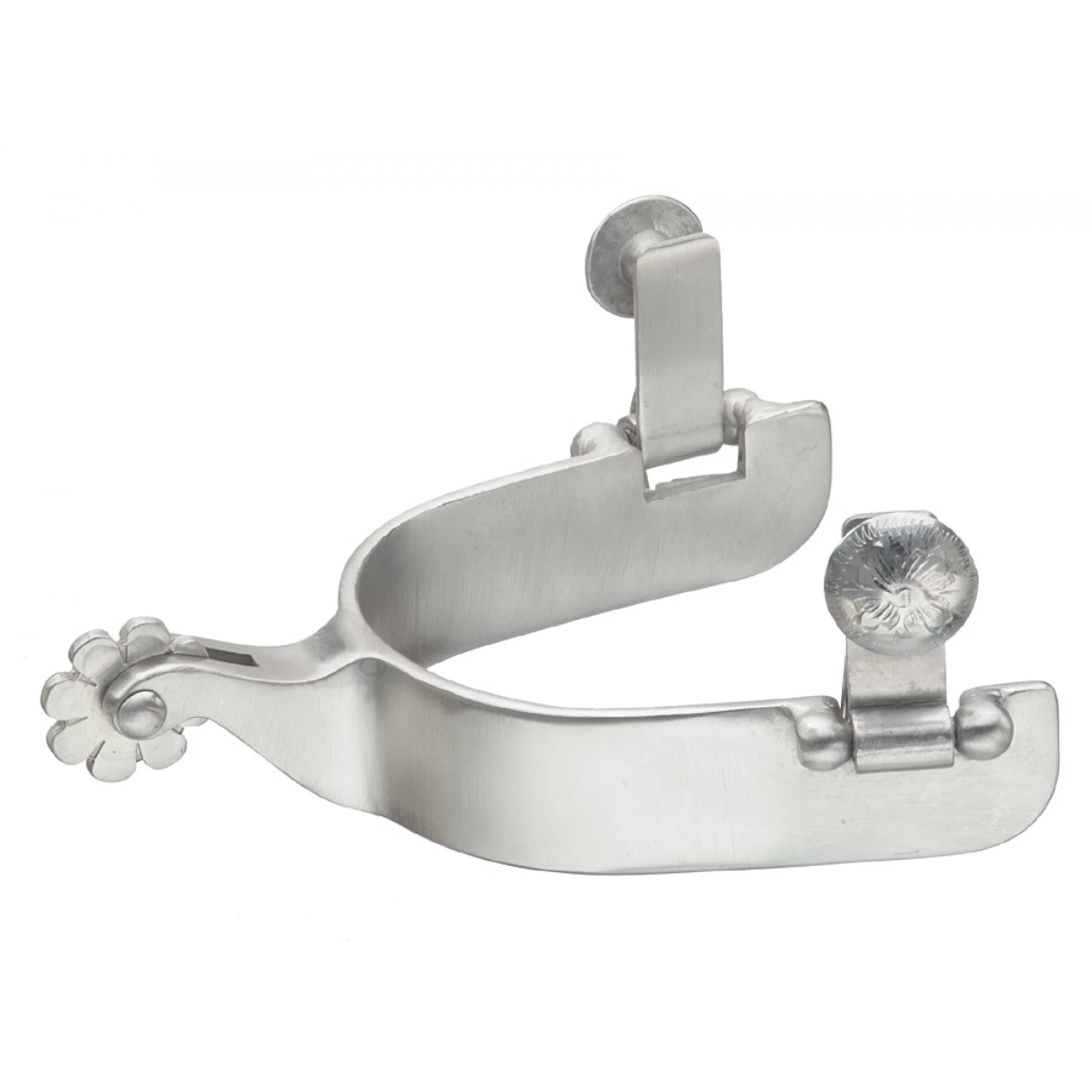 Éperon de roping pour homme en acier inoxydable brossé avec coupe ovale.