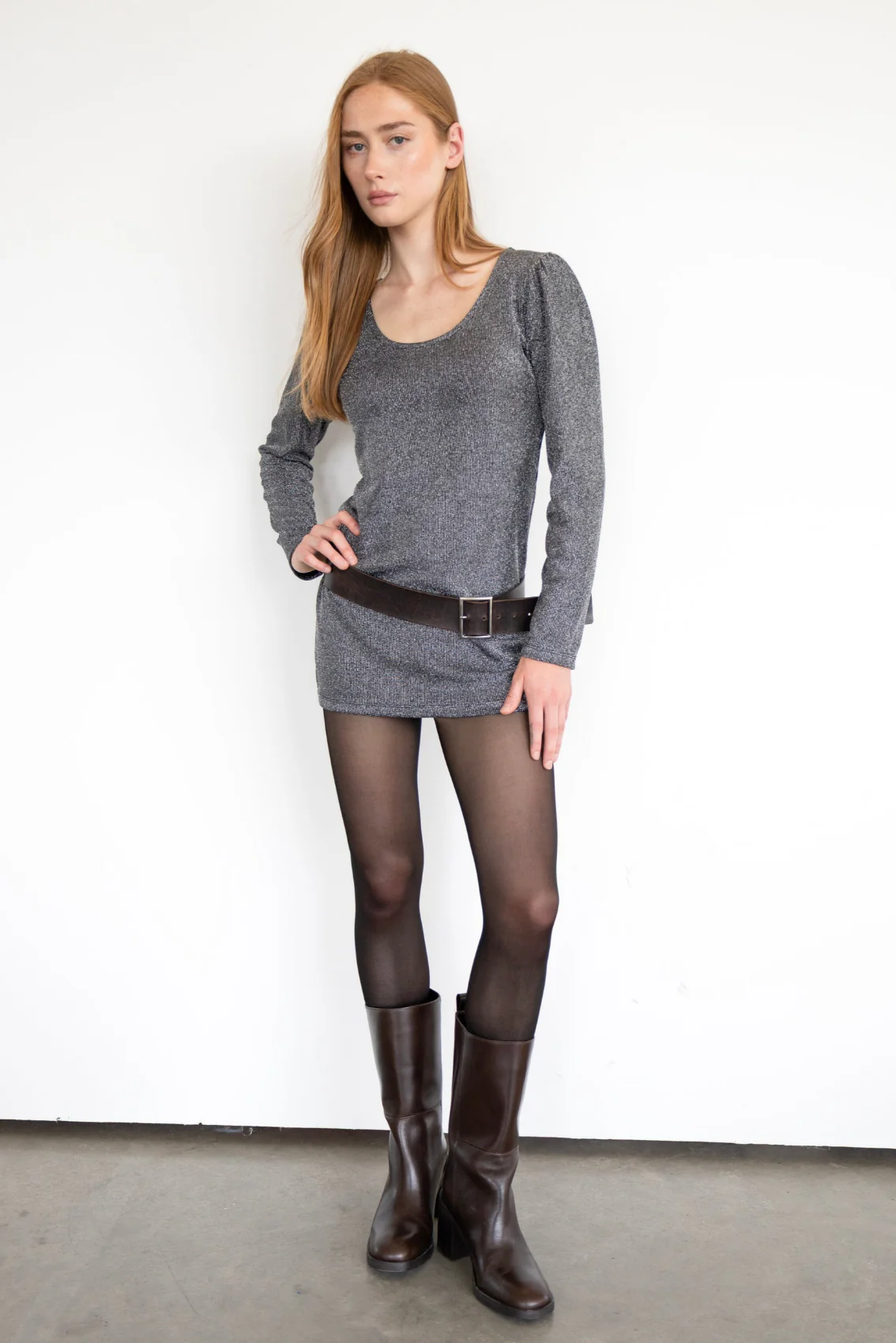 Tunique réversible : d’un côté, une encolure en « U » dégagée, de l’autre, une encolure bateau plus sobre. Les épaules légèrement bouffantes et les manches longues lui confèrent une jolie silhouette. Sa longueur sous les fesses permet de la porter aussi bien par-dessus un pantalon que rentrée à l’intérieur.