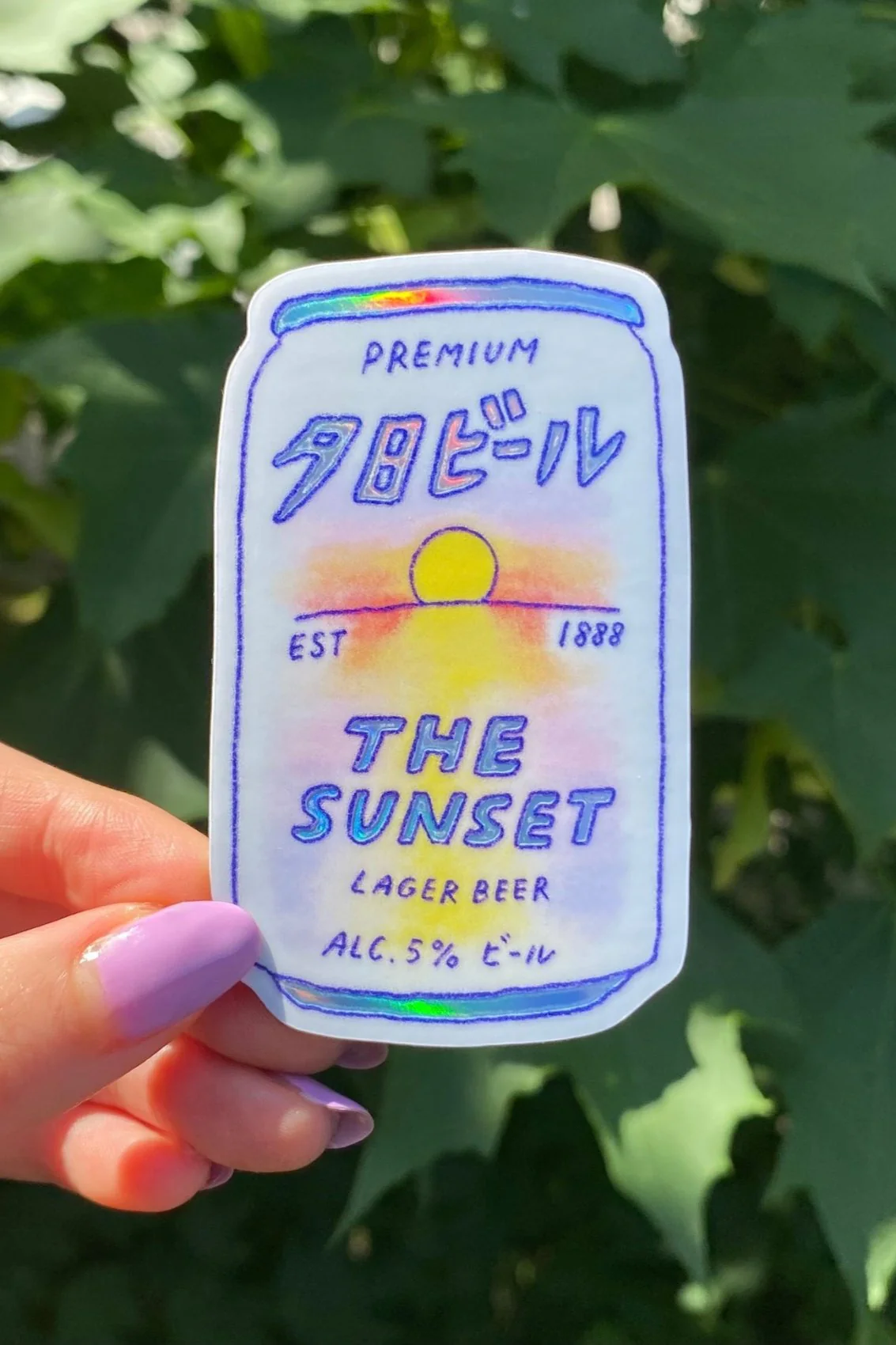 Autocollant holographique de rêve pour les amateurs de bière japonaise.