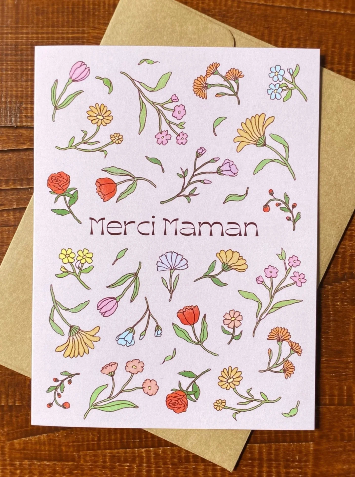 Création locale, faite avec amour et talent à Montréal. Une carte florale classique pour célébrer et apprécier la MEILLEURE maman (la vôtre) !! Détails : Imprimé sur du papier blanc naturel de 100 livres 4,5″ x 6″ (11,5 x 15,2 cm) Vide à l’intérieur Enveloppe kraft incluse