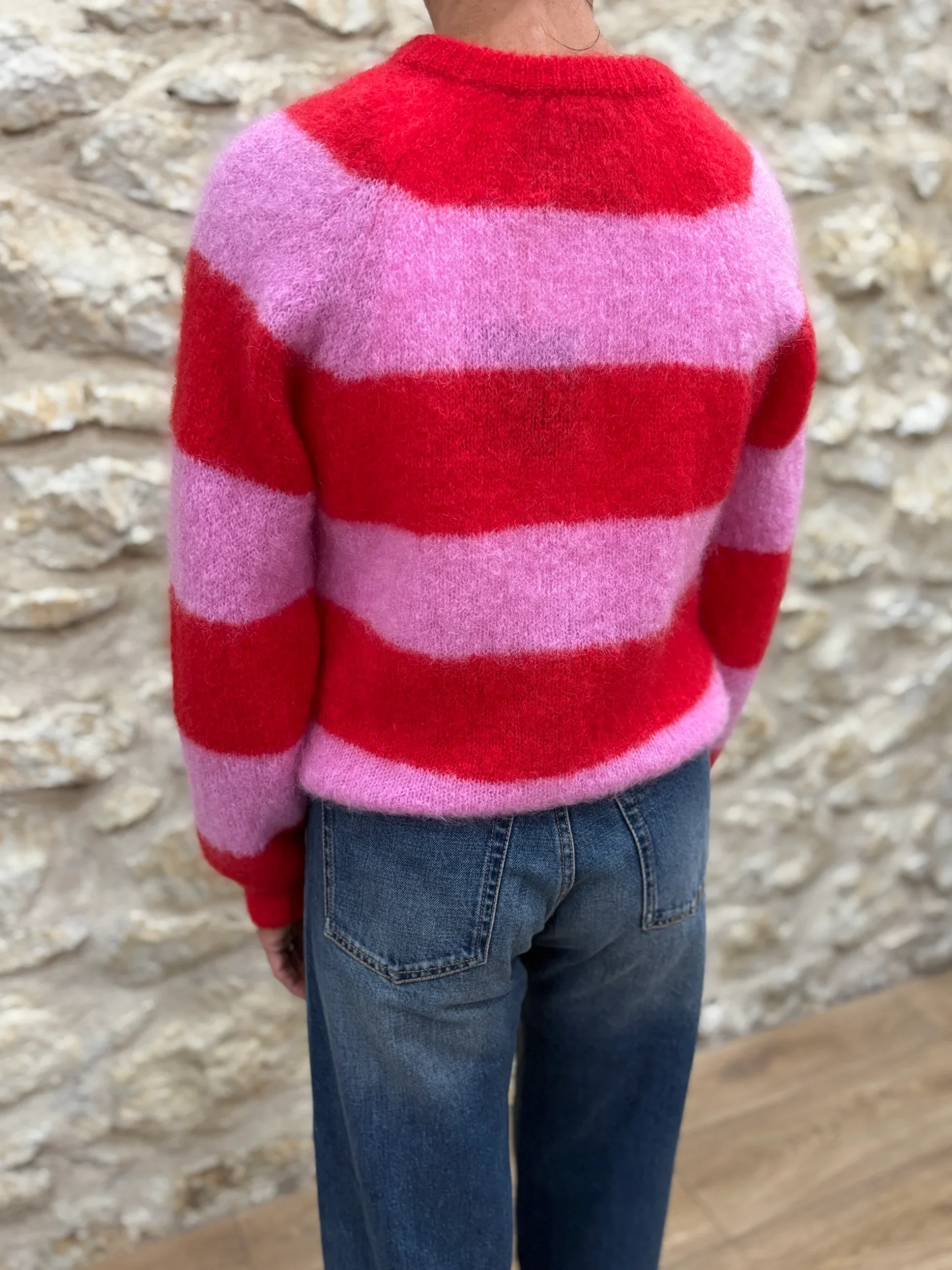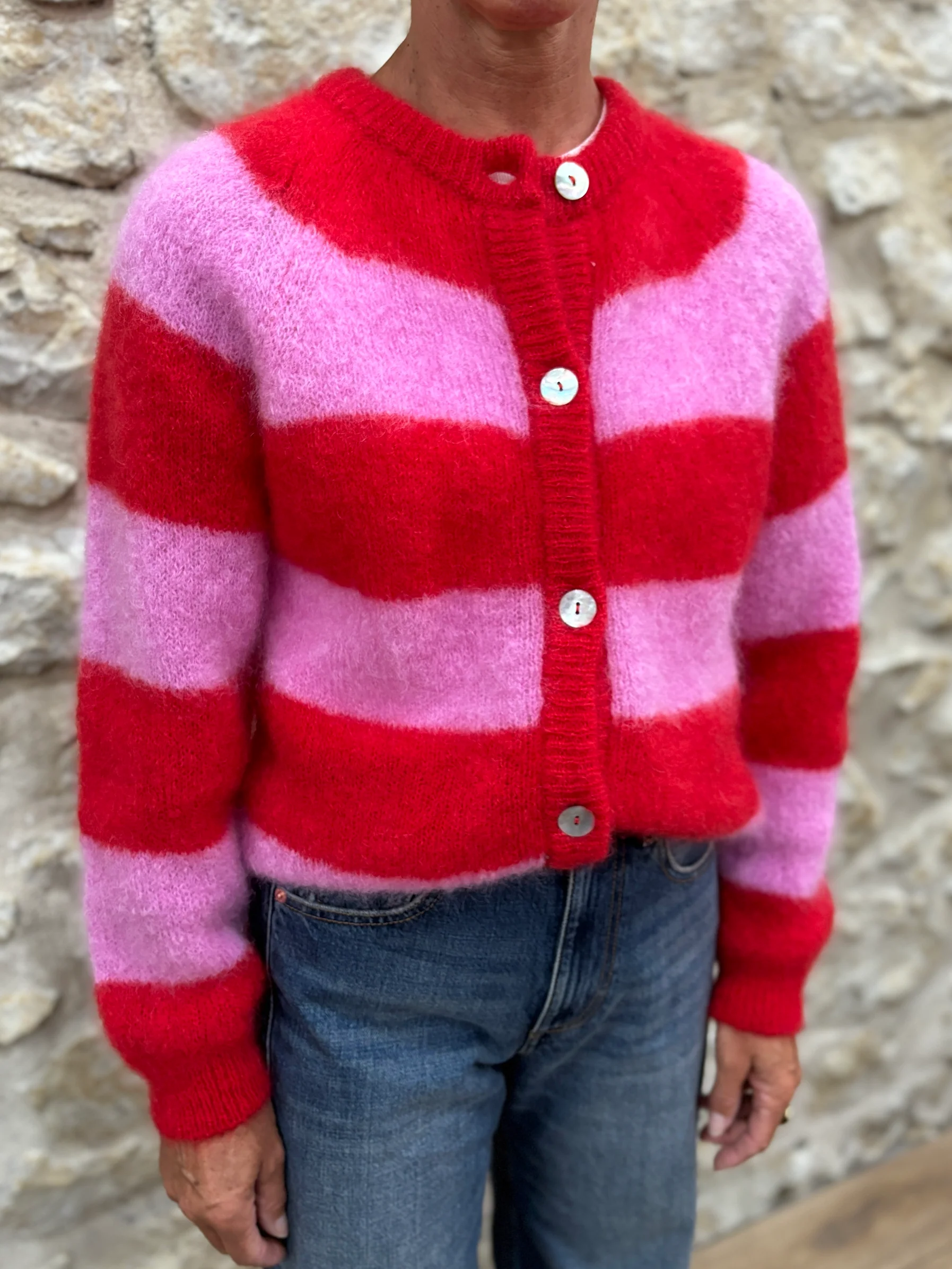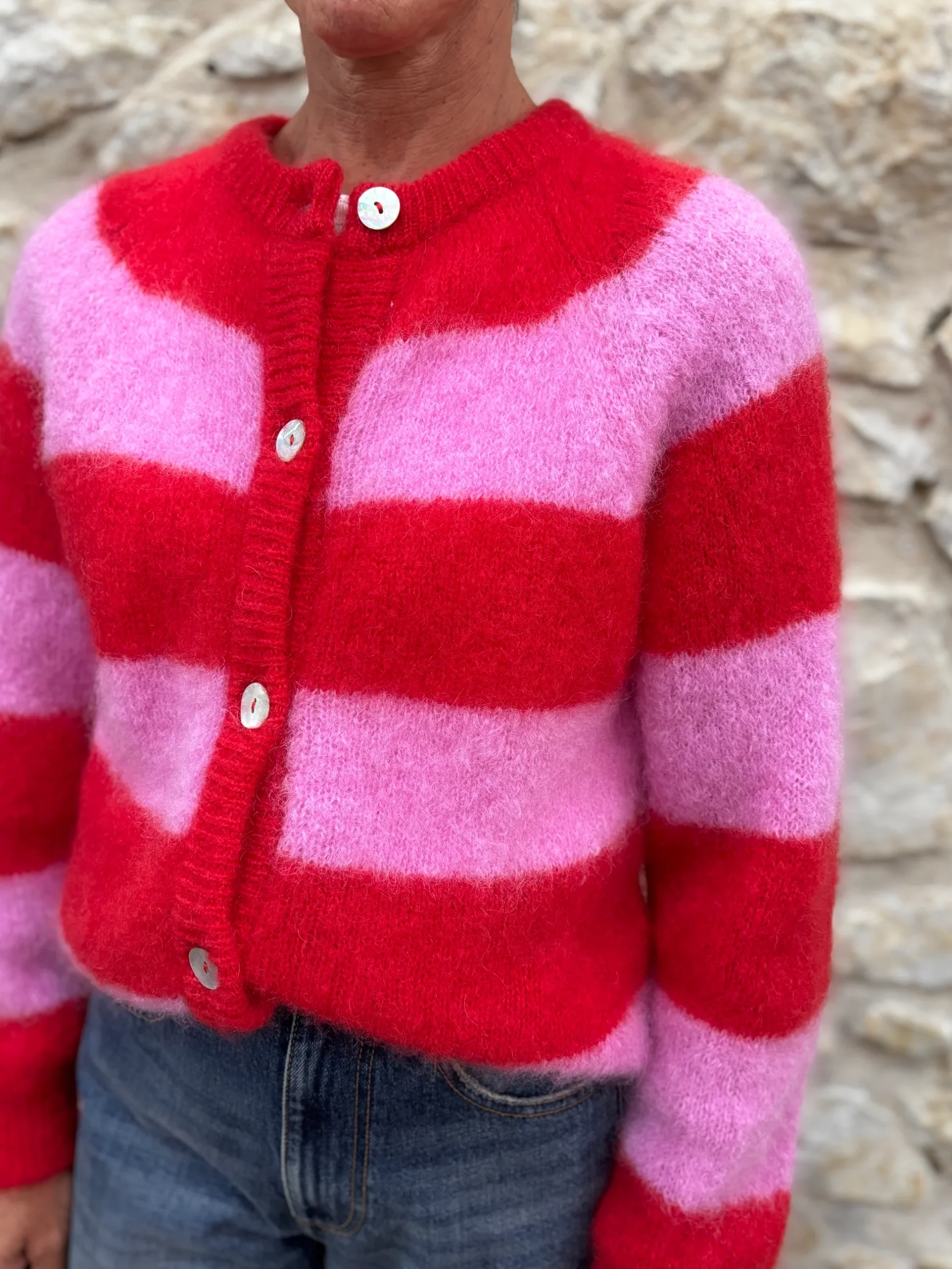 Matières : Mohair, polyamide & élasthanne Coupe : Coupe cardigan large Forme du col : Col rondLongueur des manches : Manches longuesCouleurs / Motifs : Rayures roses et rouges Notre modèle porte une taille 0 et mesure 165 cm. Nom du modèle : ALICEMarque : LES TRICOTS D’O Conseils d’entretien : Lavage à la main.Informations […]