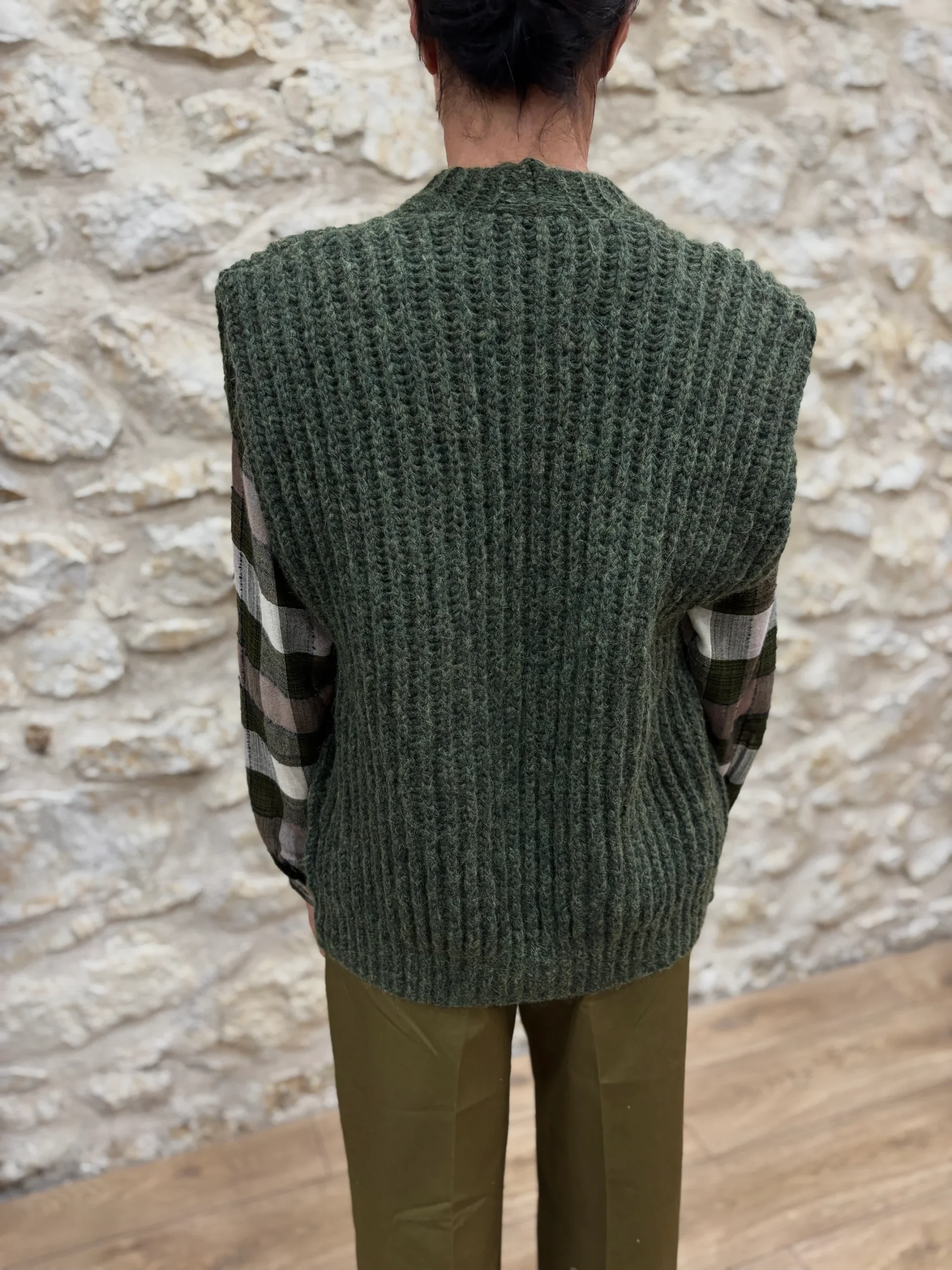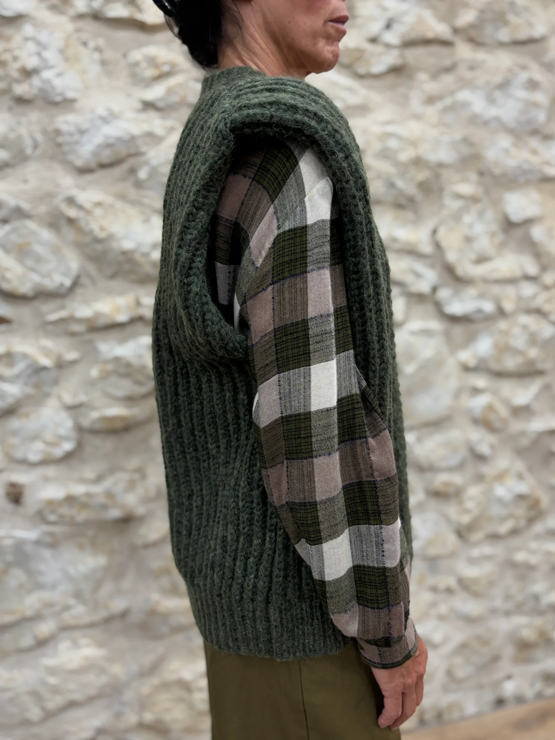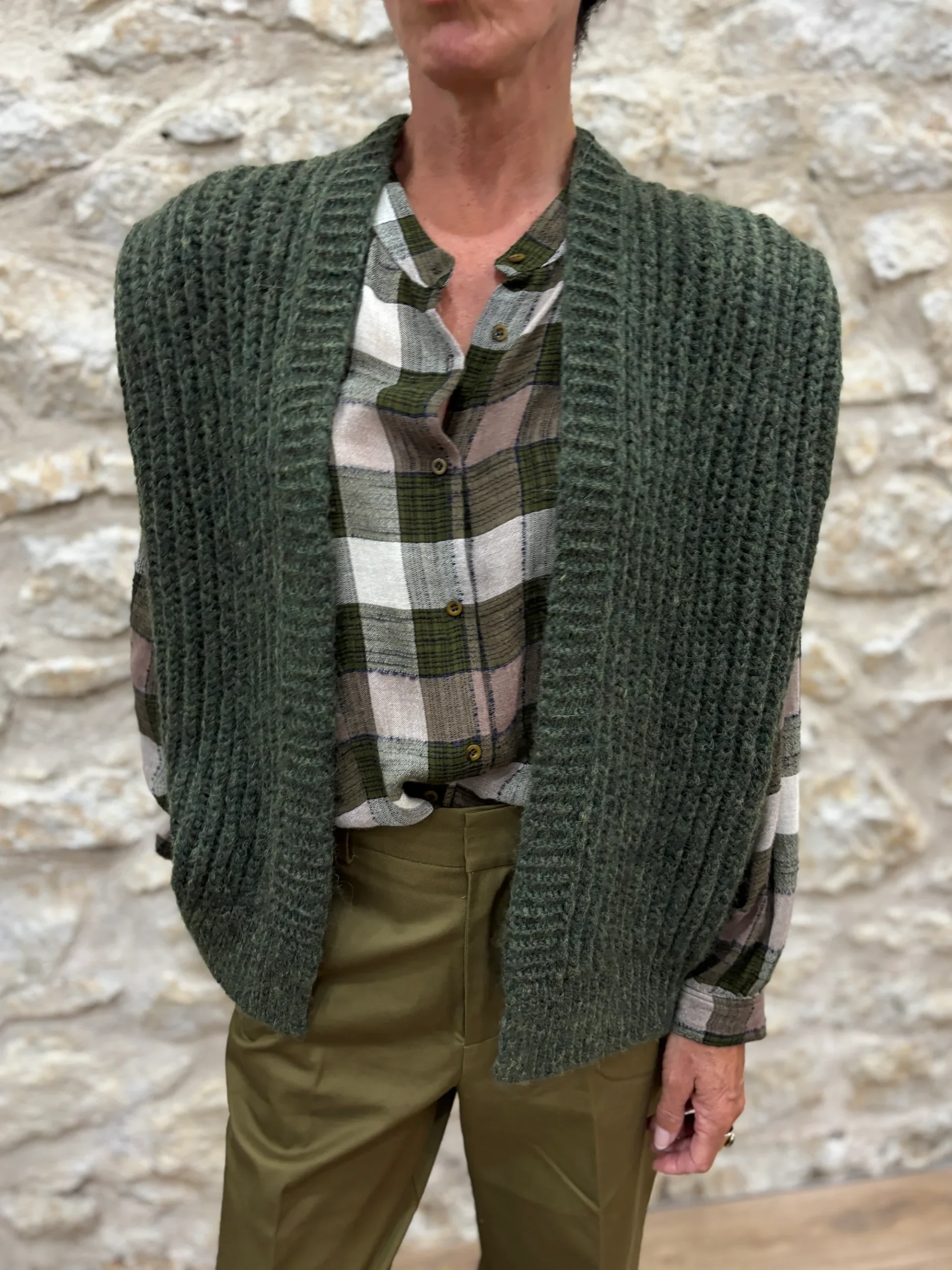 Matières : Alpaga, laine, polyamide et élasthanne. Coupe : Coupe largeLongueur des manches : Sans manchesCouleurs / Motifs : Vert Notre modèle porte une taille UNIQUE et mesure 165 cm. Nom du modèle : STELLAMarque : LES TRICOTS D’O Conseils d’entretien : Lavage à la mainInformations supplémentaires : Convient du XS au XL