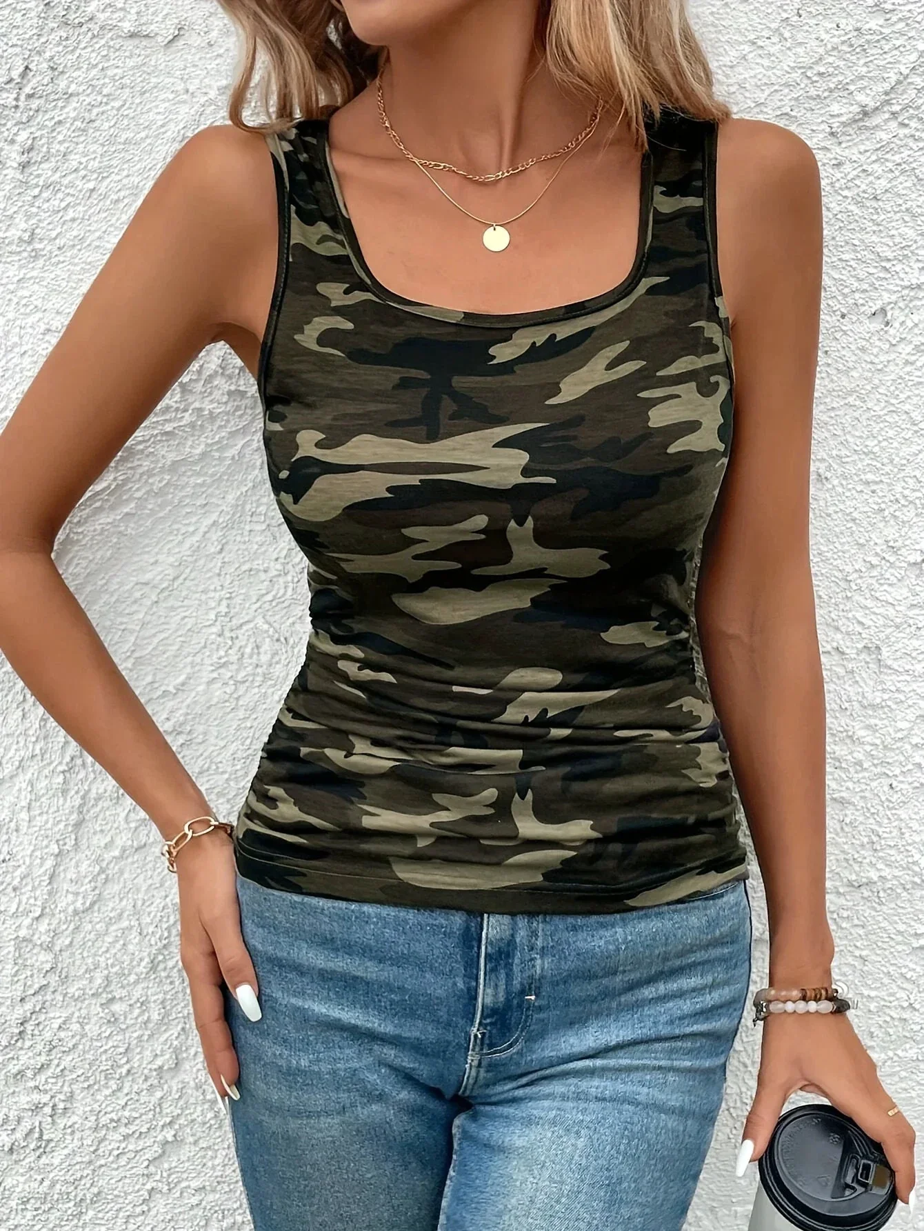 Direction élégante — Gilet tricot camouflage imprimé pour femme (été)