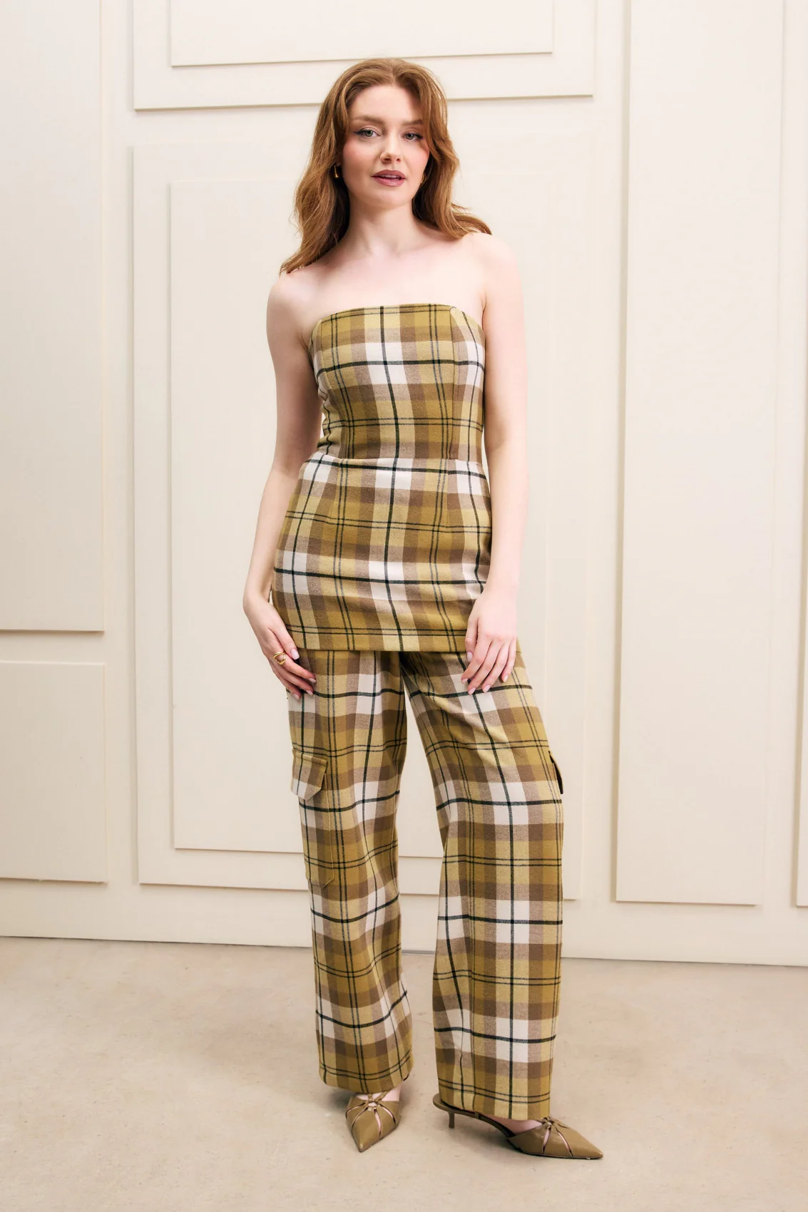 HILARY MACMILLAN Panatalon Cargo Plaid – Vert