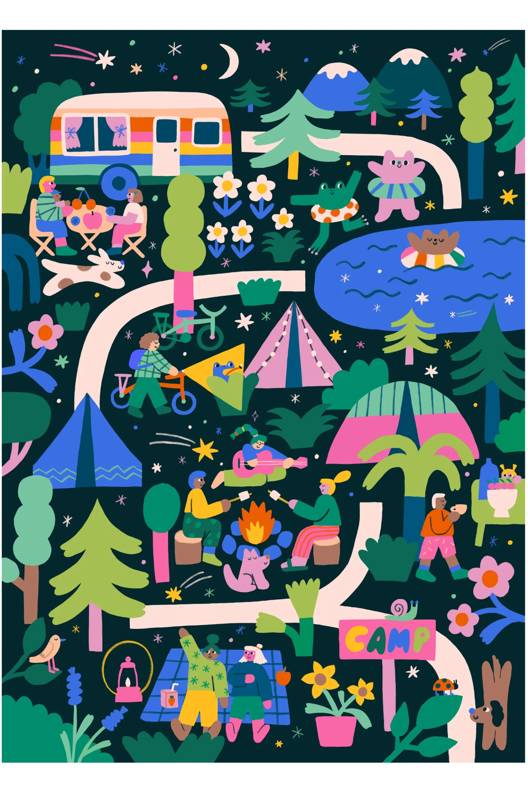 Judit ZengÅ‘vári est une illustratrice basée à Budapest .. Elle s’inspire des moments du quotidien, tourles en images joyeuses en utilisant des couleurs vives couleurs viveset des personnages fantaisistes.