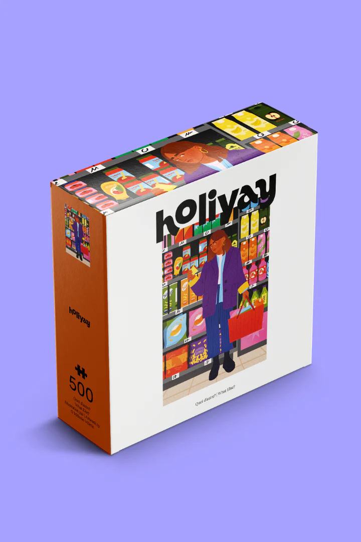 Artiste : Mélanie Vilette Mélanie Villette est une illustratrice et graphiste basée en Normandie. Elle crée des illustrations lumineuses, mettant en scène des personnages dans des décors empreints de la poésie du quotidien. 500 pièces de forme unique, pour éviter les fausses coupes ! Découpe : Pièces découpées avec précision selon une grille variable qui […]