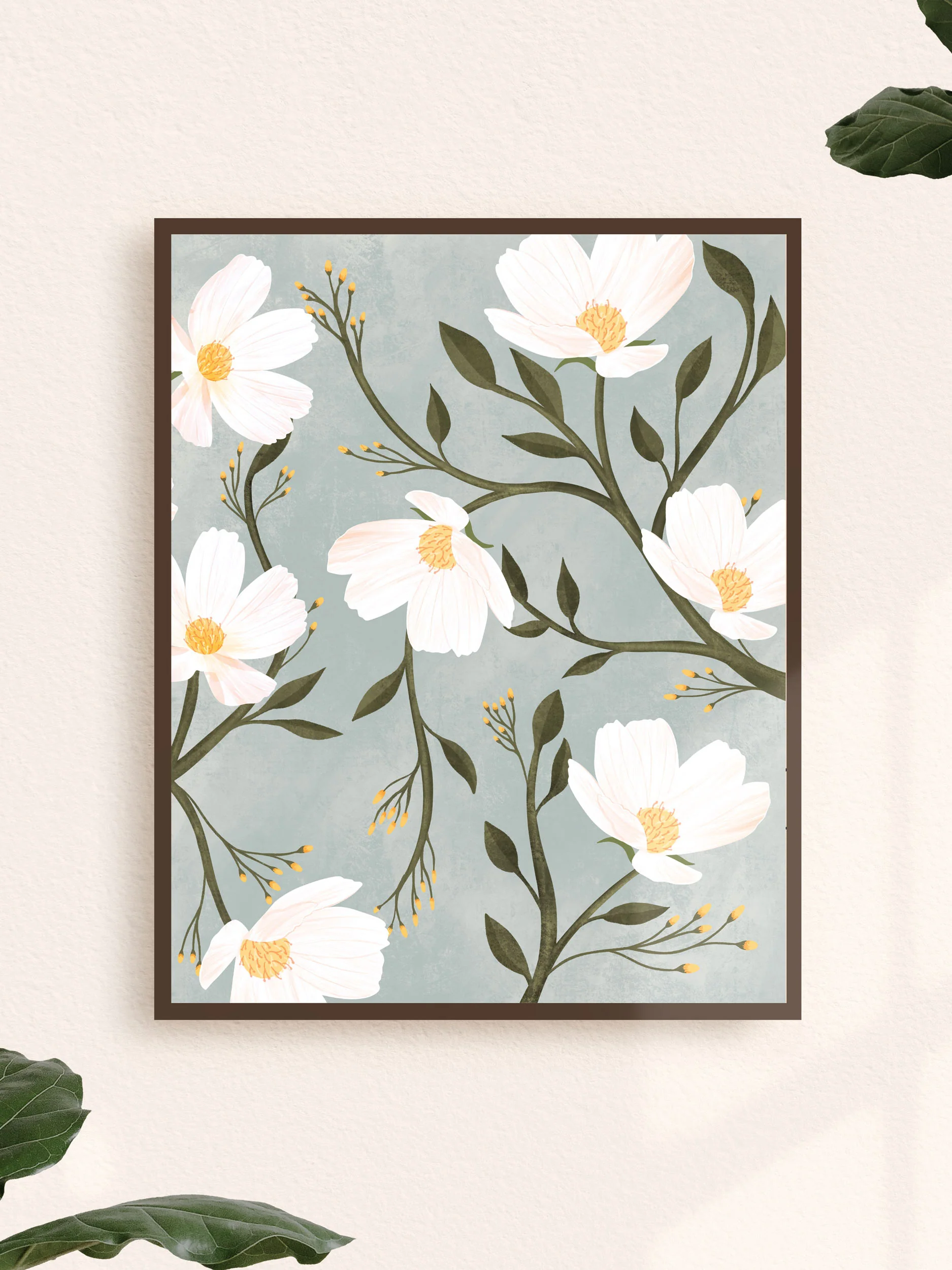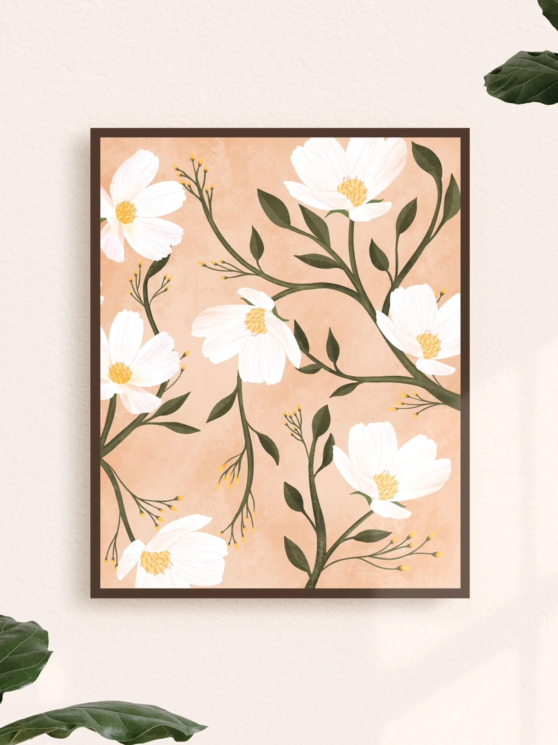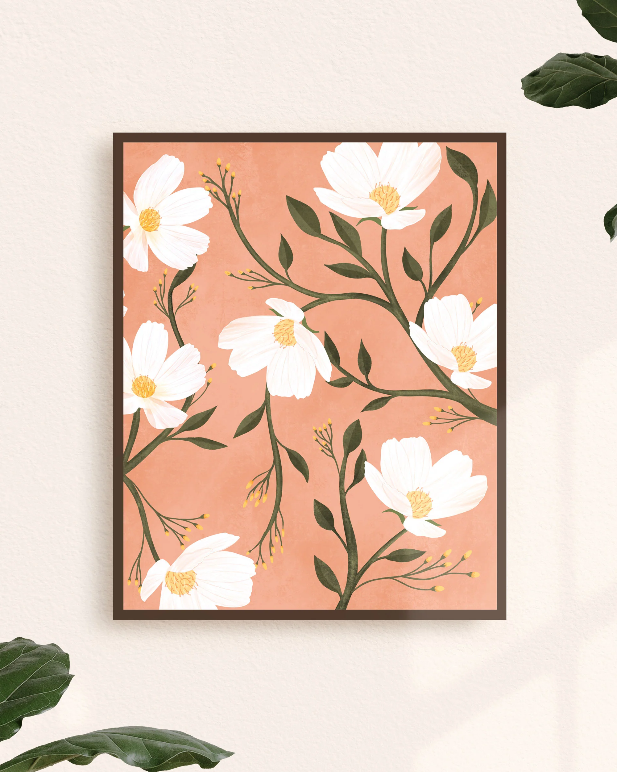 Impression représentant des fleurs avec un fond de couleur différente.