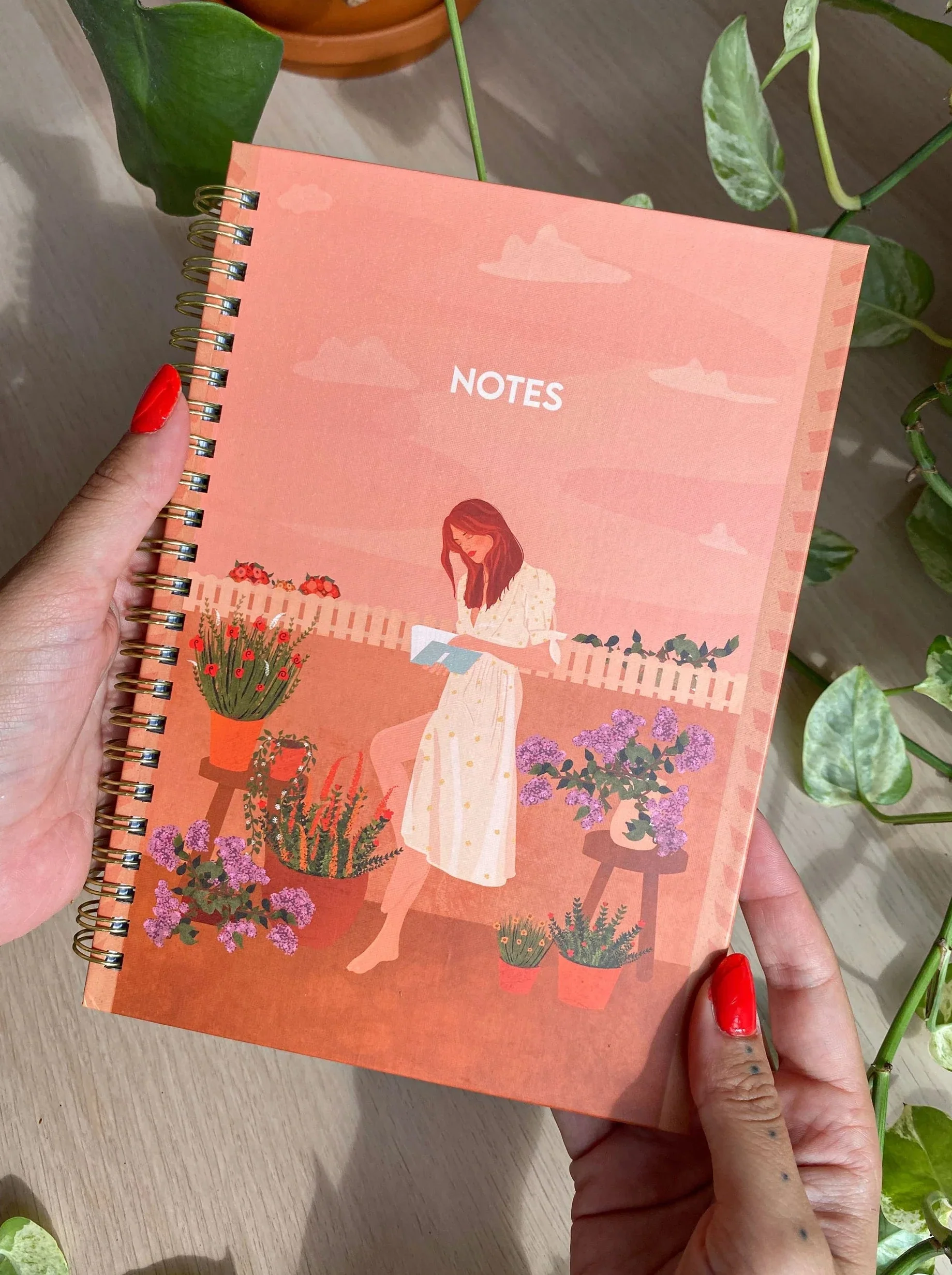 Magnifique carnet de notes composé de 80 pages lignées. La reliure est en spirale et dorée. La couverture est rigide.