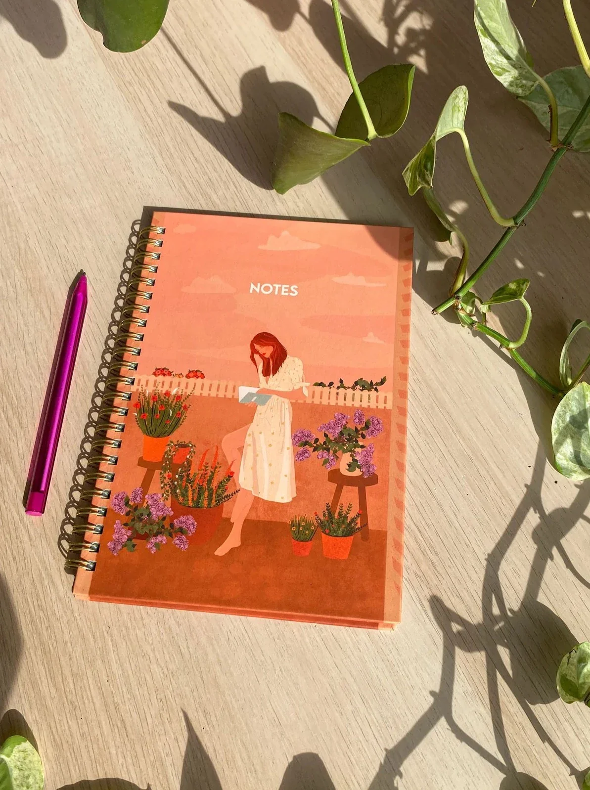 Création locale, faite avec amour et talent à Montréal Magnifique carnet de notes composé de 80 pages lignées. La reliure est en spirale et dorée. La couverture est rigide. Dimensions: 5,8 X 8,3 pouces.
