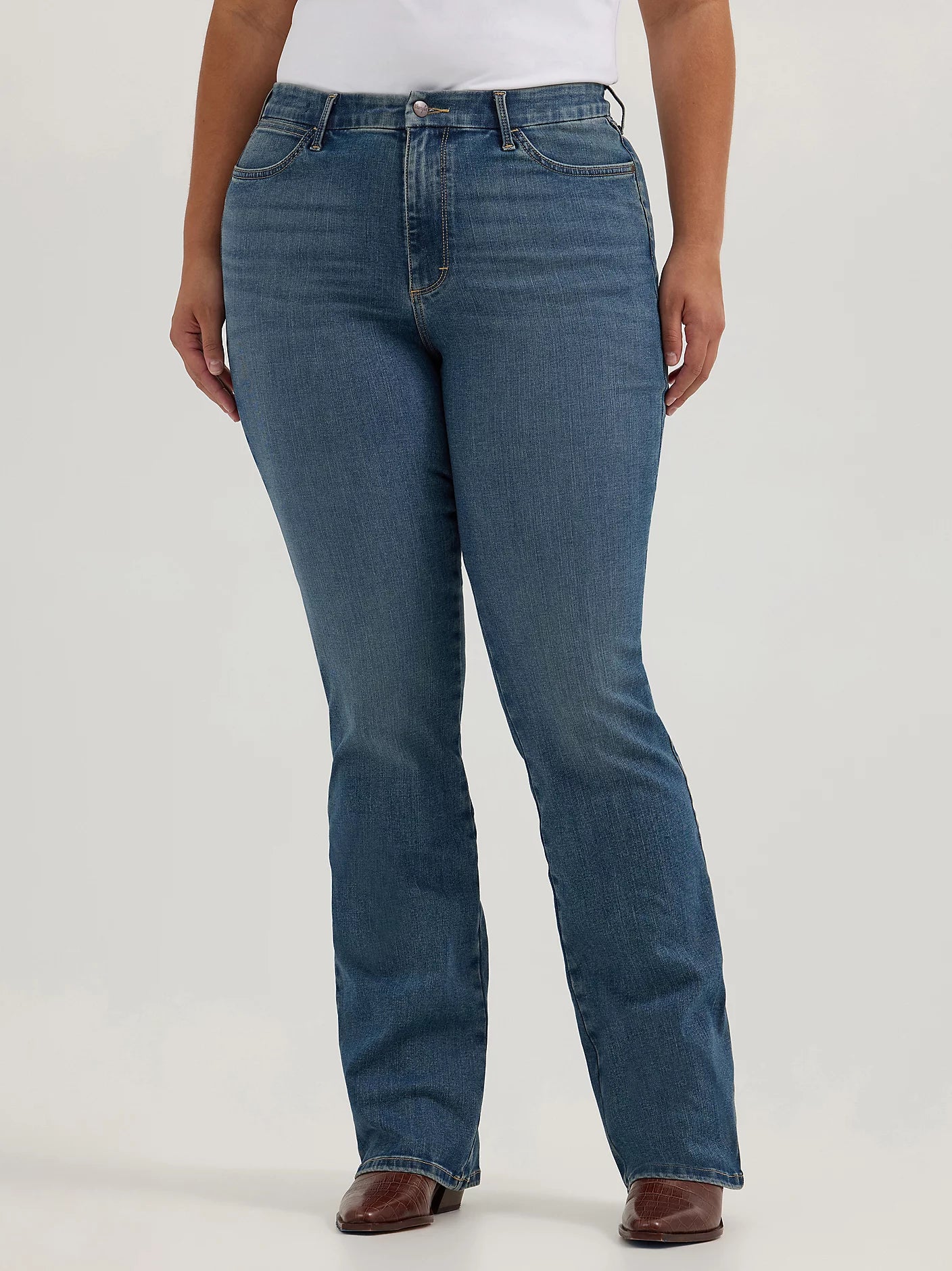 Découvrez une nouvelle dimension du coupé. Le jean bootcut taille haute Wrangler® Bespoke pour femme avec vos courbes en valeur. Sa taille profilée élimine les espaces vides et sa silhouette sublime vos formes sous tous les angles. Ce jean bootcut pour femme est confectionné dans un mélange de coton confortable et extensible pour plus de souplesse et une meilleure tenue. Il arbore également tous les détails emblématiques : cinq poches, broderie « W », logo écusson et délavages authentiques. La collection Wrangler Bespoke offre une extensibilité et des finitions de qualité supérieure, pour que trouver le coupé idéal ne soit plus un casse-tête.