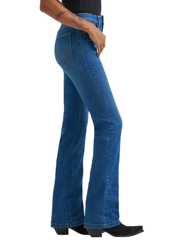 Le Jeans Wrangler® Bespoke Bootcut Pearl pour femmes offre une taille haute, un denim extensible et une coupe bootcut classique. Polyvalent et élégant, il combine confort et style pour toutes vos tenues Western ou casual.