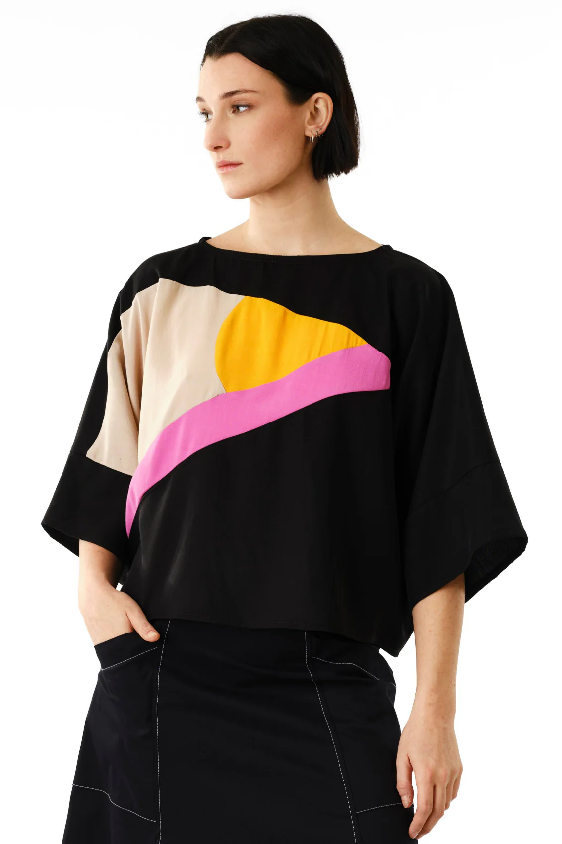 L’équilibre se révèle dans l’abstraction. Pour son motif colorblock de saison, Jennifer mêle courbes délicates et angles vifs, donnant naissance à un haut graphique et éclatant. Réalisée en sergé doux de Tencel, la blouse Lacerta se distingue par sa silhouette surdimensionnée qui assure un style décontracté et élégant.
