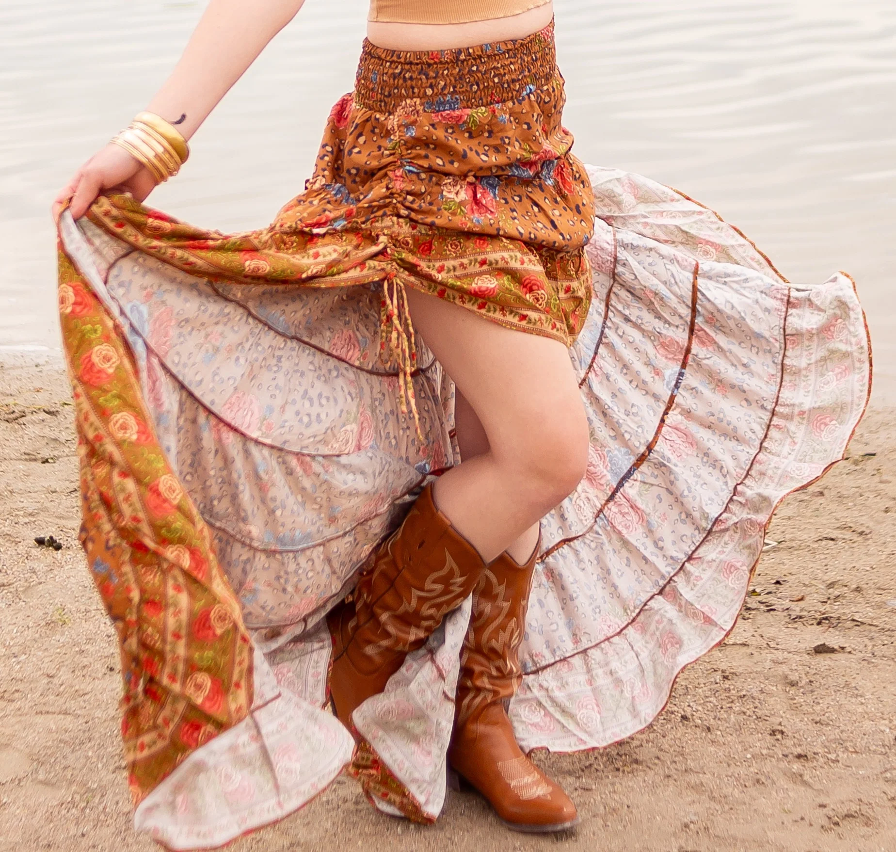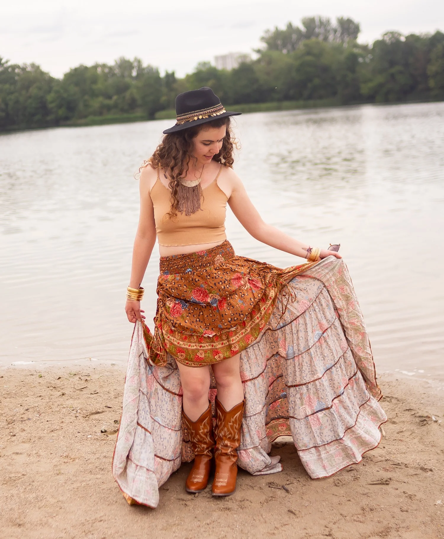 En fin de compte, ce n’est pas seulement une jupe bohème chic, mais un véritable symbole de liberté puisant sa force dans ses voyages au bout du monde. Ce style te permet d’affirmer ta façon de pensée et tes convictions hors des codes avec style et raffinement.