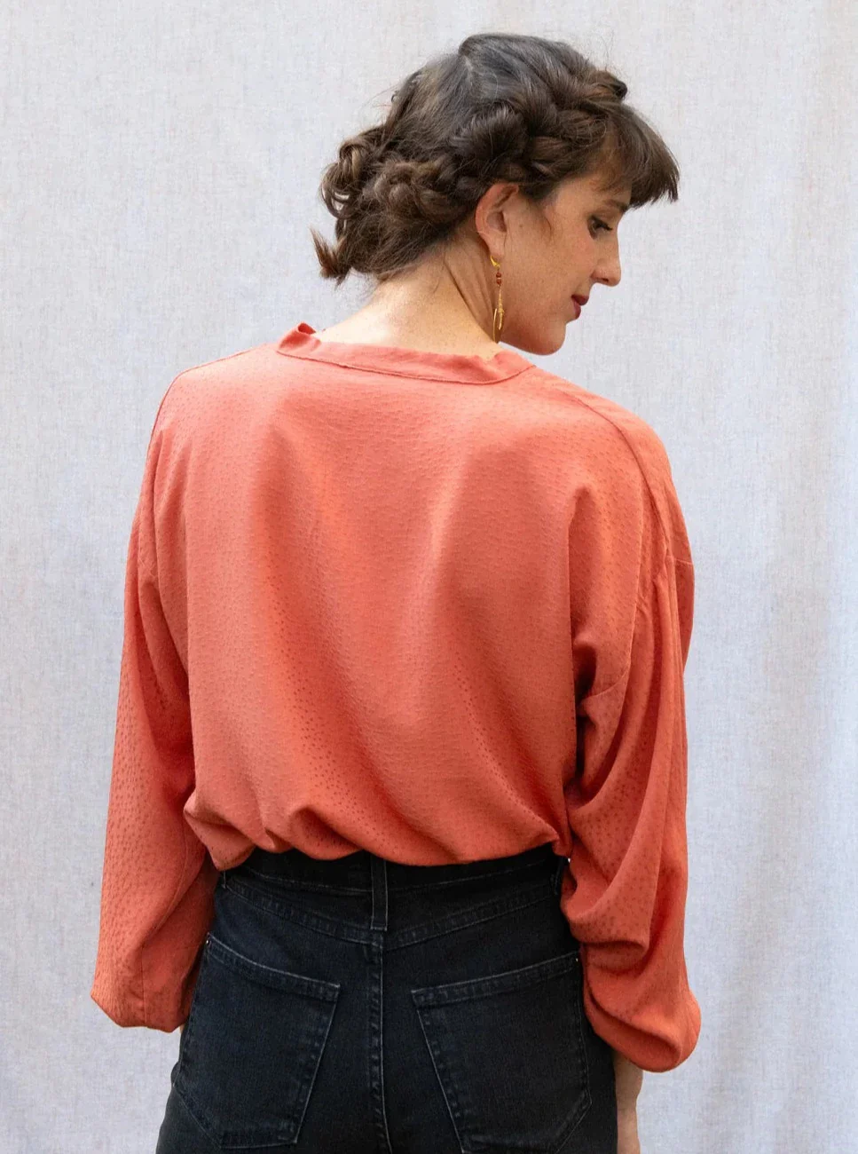 Création locale, faite avec amour, talent et passion à Montréal. Avec sa souplesse, ce joli haut offre une sensation de douceur et de confort à chaque fois. Il convient à tous les styles et se voit également doté d’emmanchures longues pour un effet plus ample. Composition : Rayonne certifié Oekotex.