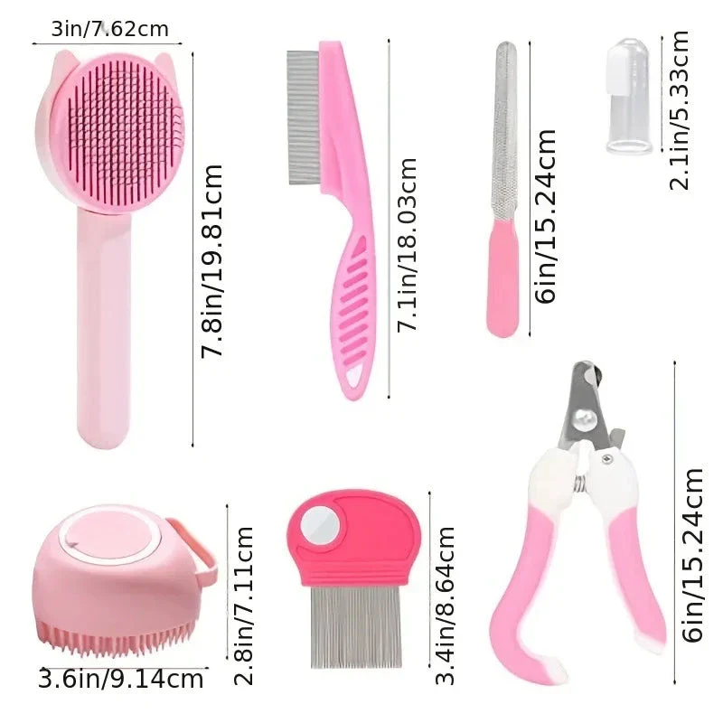 - 7 accessoires inclus (brosse, coupe-griffes, petits et grands peignes, brosse de lavage, lime à ongles, brosse anti-poux et 2 brosses à dents doigts).