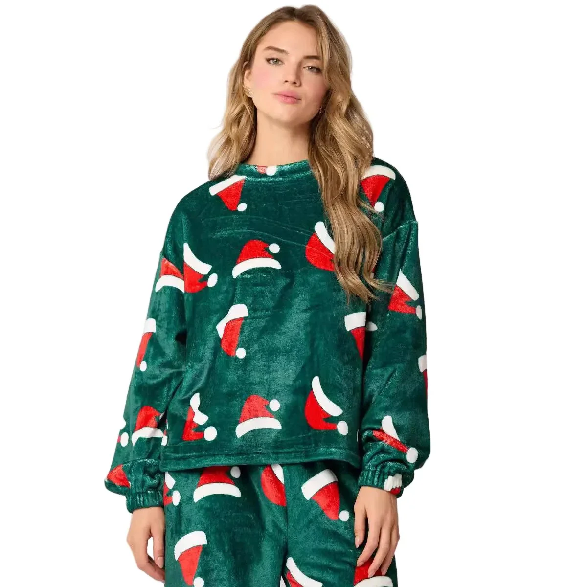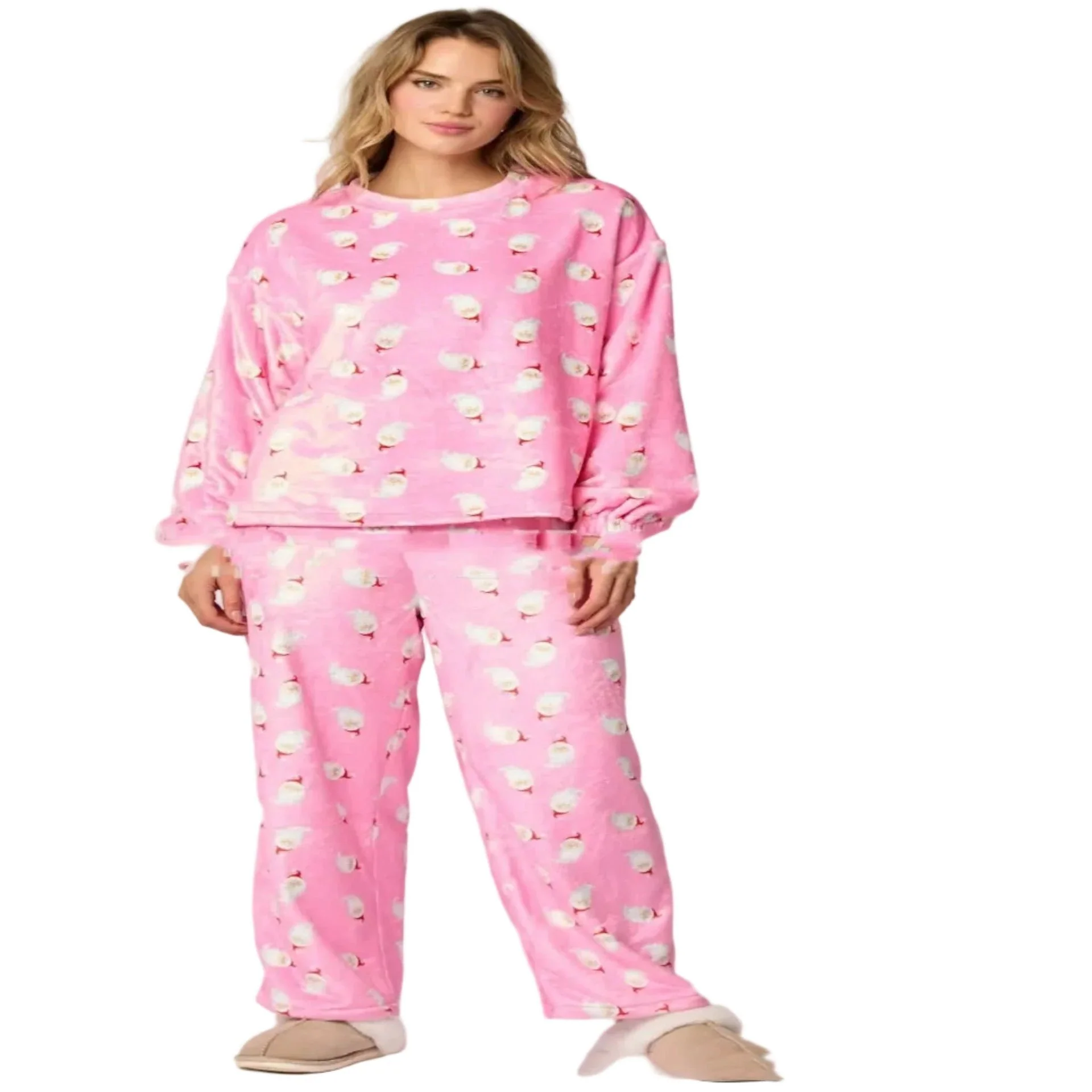 Pyjama d’hiver polaire à capuche motif fraise – robe et pantalon