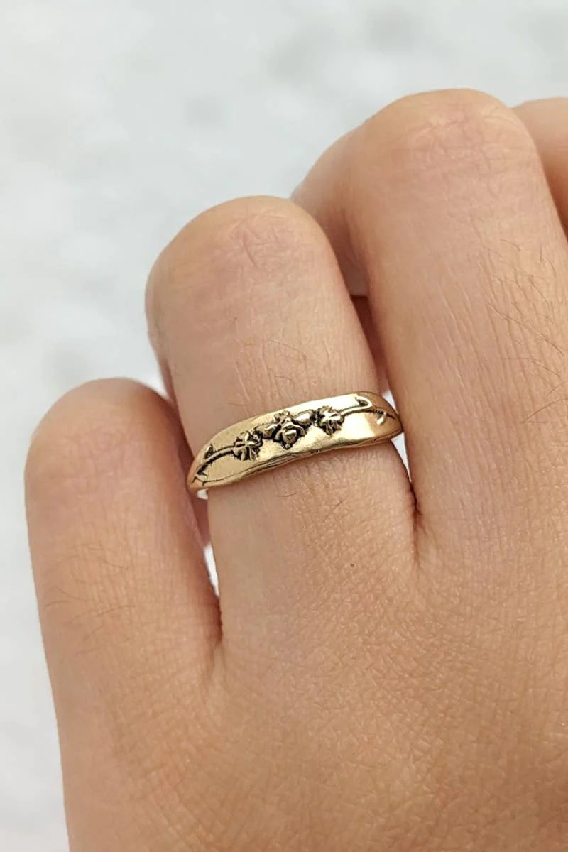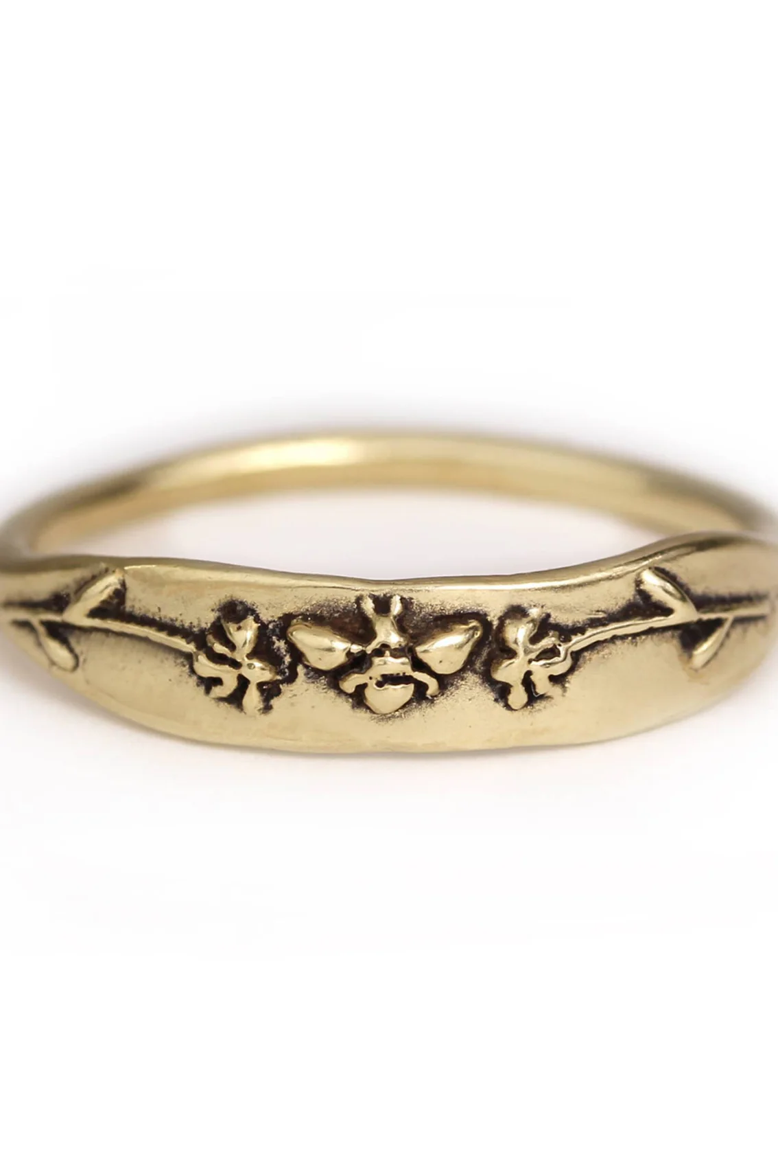 Bague Bee in Flowers fabriquée à la main en bronze massif ou en argent sterling.