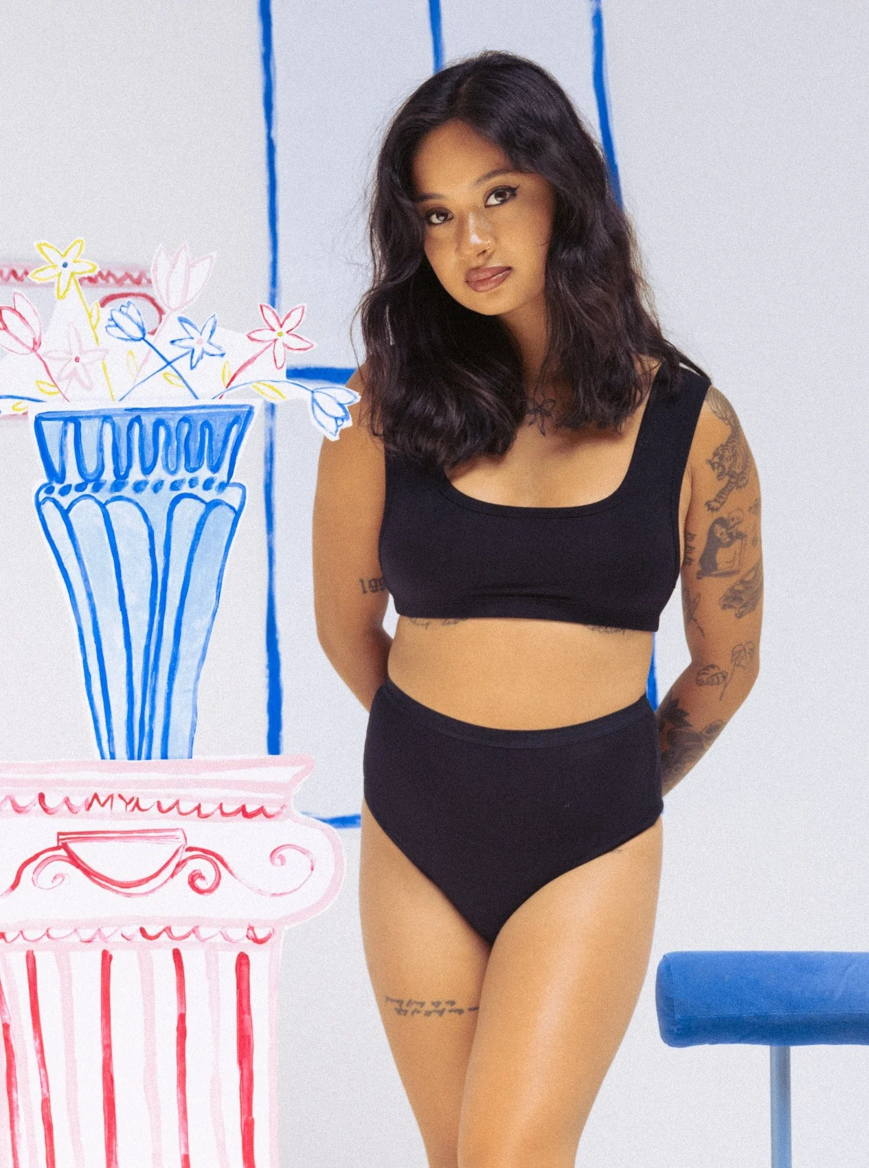 Création locale, faite avec amour et talent à Montréal. Un string taille haute. Ce modèle est parfait pour vos robes et jeans moulants préférés, minimisant tous les risques de ces lignes de sous-vêtements redoutées. Le design en jersey élastique et bambou ultra doux se place à votre taille naturelle pour un confort ultime avec une […]