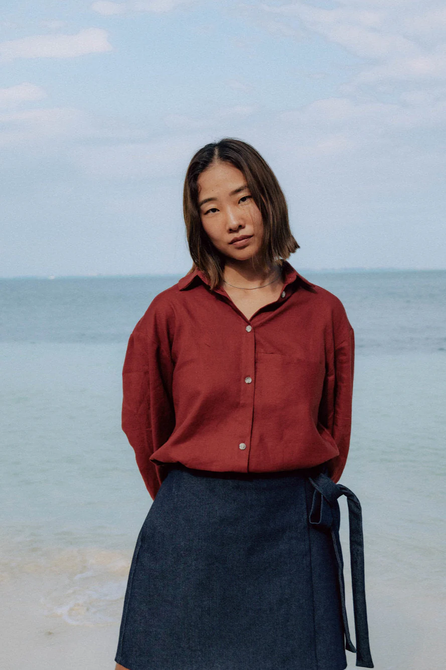 Création locale, faite avec amour et talent à Montréal. Jupe portefeuille Composition: Denim Coton 98% Spandex 2%