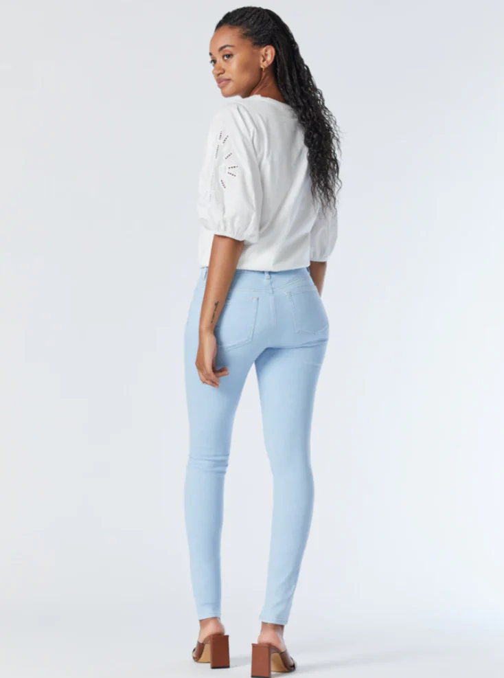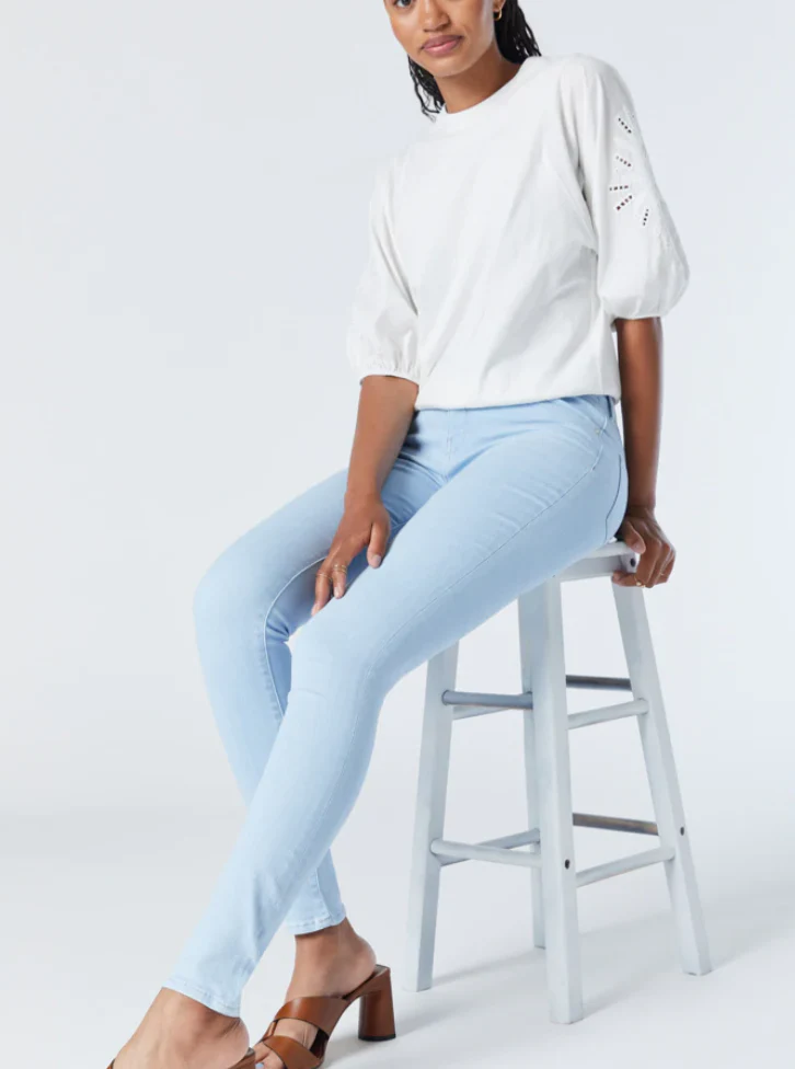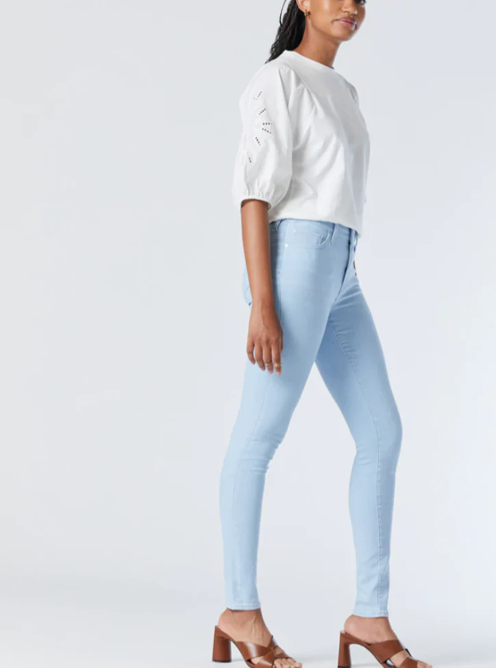 Jeans taille haute léger comme une plume et dans un fini bleu glacé qui illumine toute garde robe. Ce jean super skinny en Tencel et coton recyclé est la paire rafraichissante, responsable et confortable dont on a envie pour l’été !