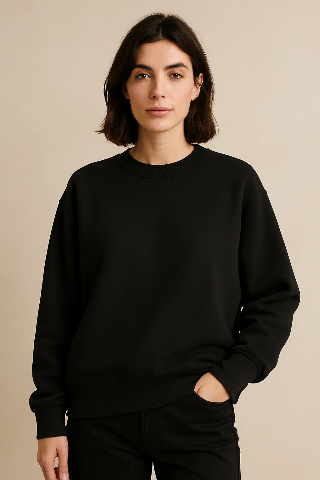 Ce sweat oversize allie confort et tendance pour un look résolument moderne. Sa coupe ample et ses lignes minimalistes assurent une silhouette stylée au quotidien. À porter avec un jean ou un pantalon ajusté pour créer un contraste élégant.