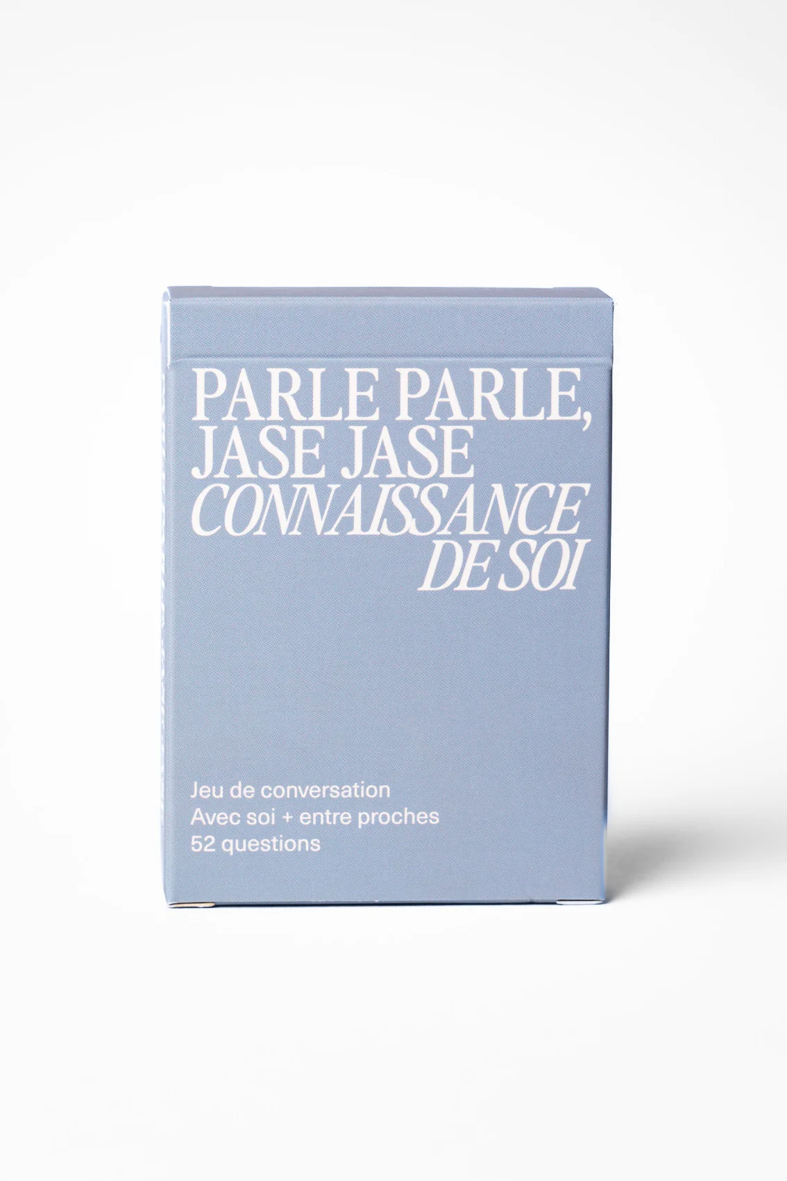 Faites-vous un cadeau et utilisez PARLE PARLE JASE JASE CONNAISSANCE DE SOI pour alimenter votre pratique de journaling ou simplement en pigeant une carte le matin au réveil.