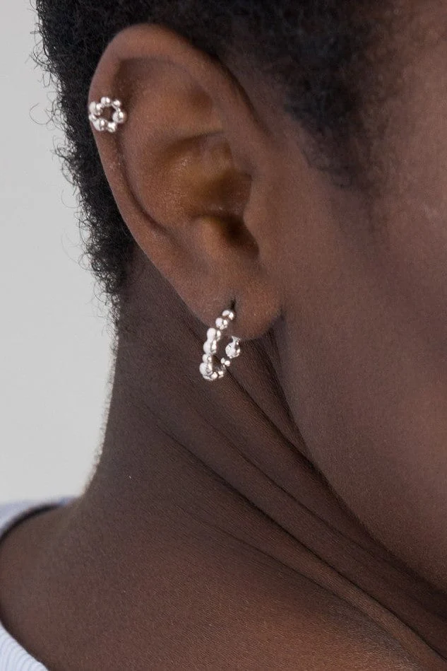 Boucles d’oreilles perlées délicates pour un tour du chapeau ! Fabriquées à la main en argent sterling, ces petites créoles sur un clous sont un ajout délicat à n’importe quel look. Ils sont faits pour être portés tous les jours et ne jamais être enlevés. Obtenez un look minimaliste-chic en les associant à nos minies boucles d’oreilles en perles Omega.