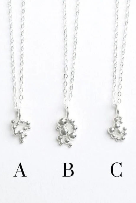 Le collier Clust est une expression raffinée de la nature organique de l’argent sterling. Chaque pendentif présente une grappe de granules formée à la main, disponible en trois styles distincts, permettant à chacun de trouver la pièce qui lui correspond. Optez pour le pendentif seul ou choisissez la chaîne en argent sterling de type ovale aplatie, ajustable à trois longueurs, pour une personnalisation optimale. Ce collier combine subtilité et caractère, en faisant un accessoire idéal pour toutes les occasions.