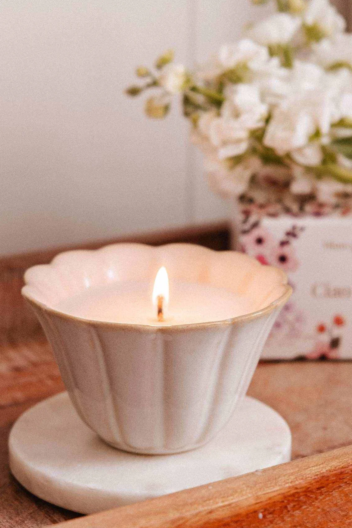 - Cette bougie de 4 oz est coulée à la main dans un contenant en céramique au design sculptural et intemporel.