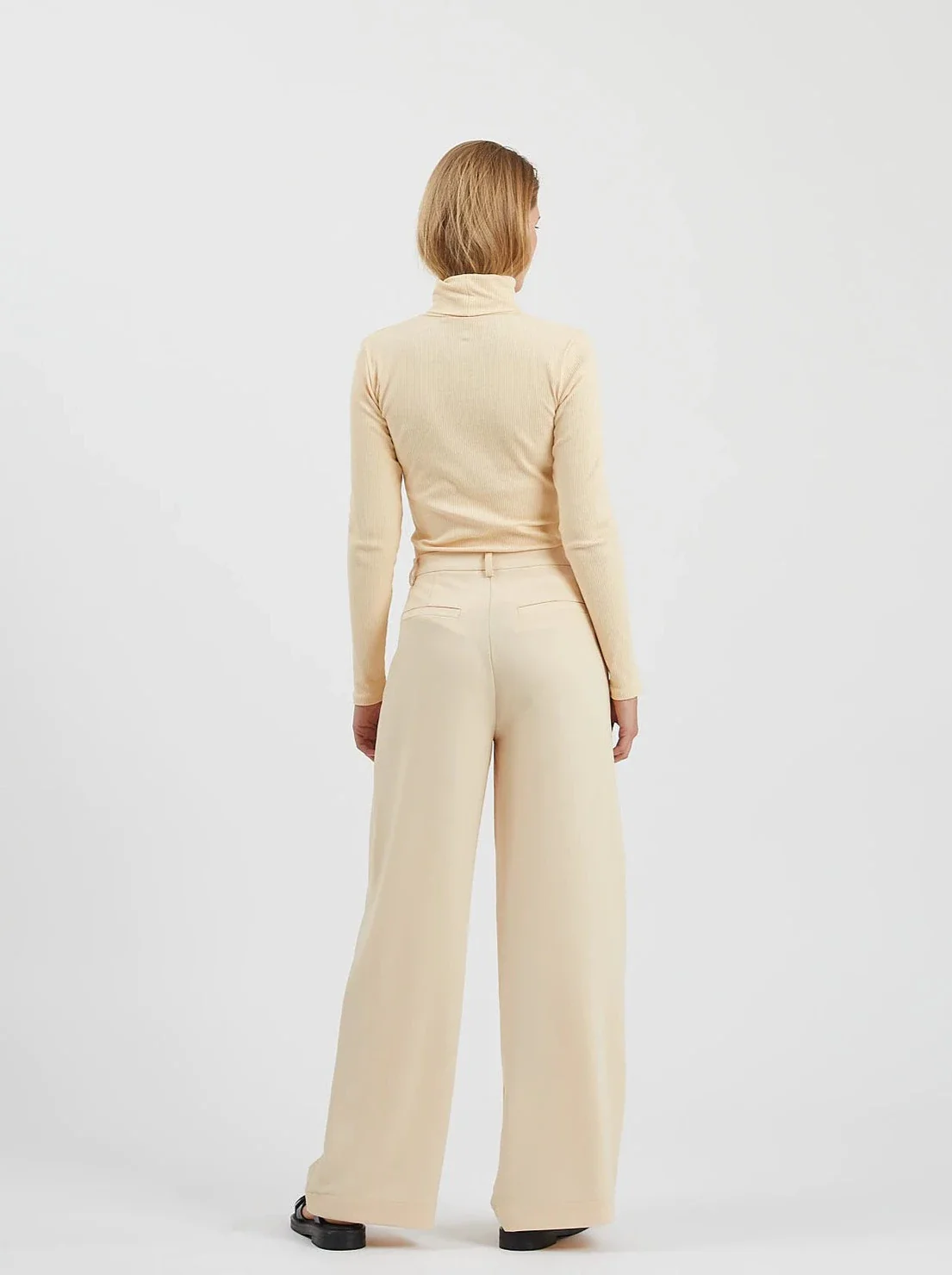 Lessa est un pantalon de style évasé, fabriqué à partir d’un mélange classique de viscose et de polyester stretch. Il est conçu avec une taille régulière, des jambes larges, des poches latérales obliques, des poches dans le dos, des passants de ceinture et une fermeture cachée.