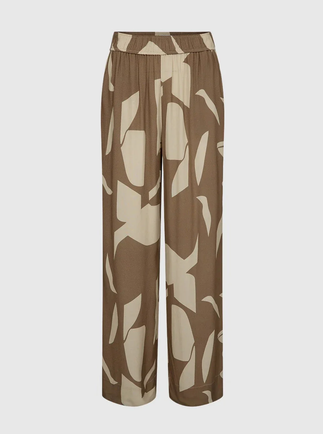 Pantalon en viscose à la coupe décontractée et au motif abstrait, doté d’une large ceinture élastique, pour un confort irrésistible. Portez le avec la chemise Seliana pour un look complet ou avec un t-shirt blanc pour un look plus minimaliste.