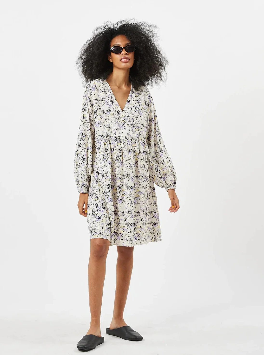 Robe courte confectionnée en 100 % viscose lenzing™ecovero™ pour une qualité douce et confortable! La robe a une coupe ample et présente des épaules tombantes, des manches longues ballon et un col en V avec effet cache-cœur. Elle est détaillée avec une ligne de coupe, ce qui crée une jolie silhouette.