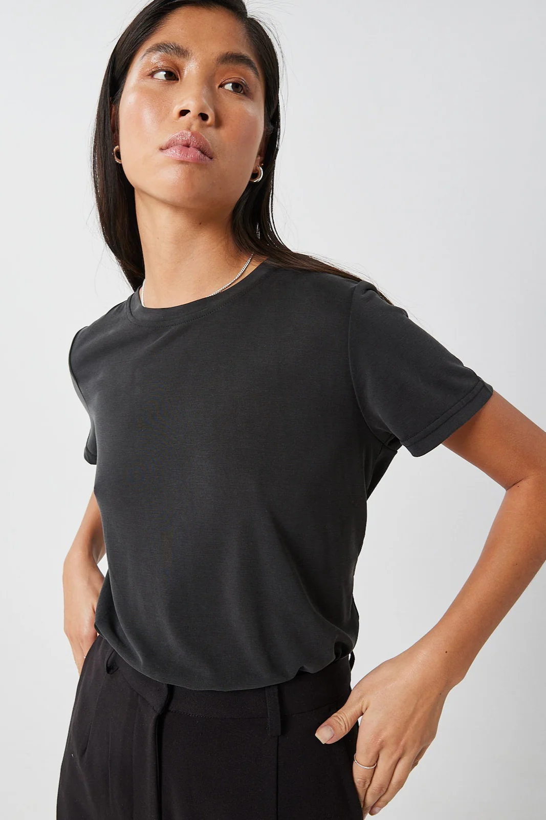 T-shirt à manches courtes, confectionné à partir d’un mélange de modal Tencel™ et de polyester recyclé avec un aspect délavé doux. Un produit de qualité, agréable à porter au contact de la peau. Il présente une coupe ample et régulière et un col rond.