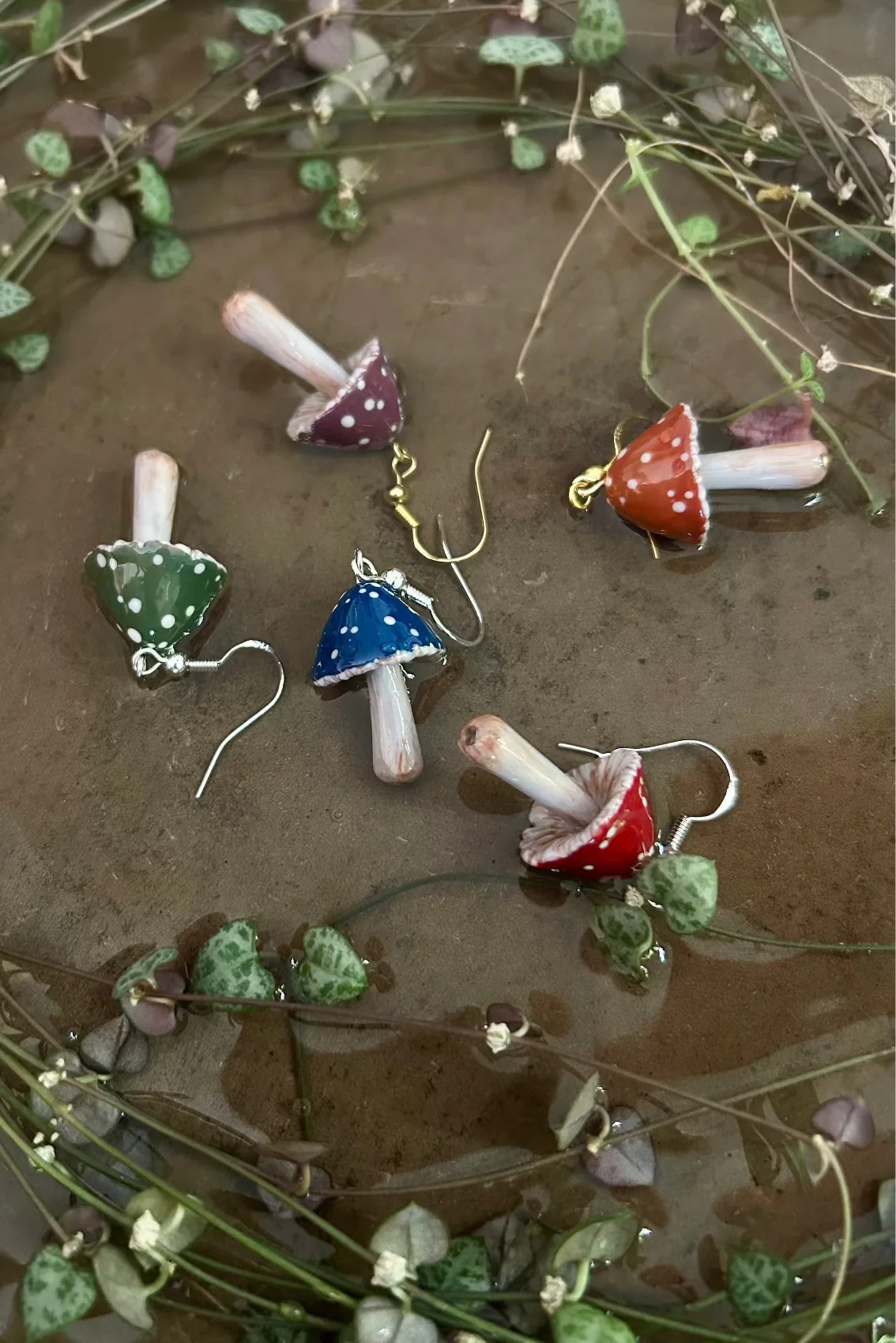 Boucles d’oreilles artisanales en argile polymère et résine époxy, en forme de champignon. Chaque paire est façonnée à la main, montée sur crochets en argent. Légères, durables et uniques, elles ajoutent une touche originale et raffinée à votre tenue.