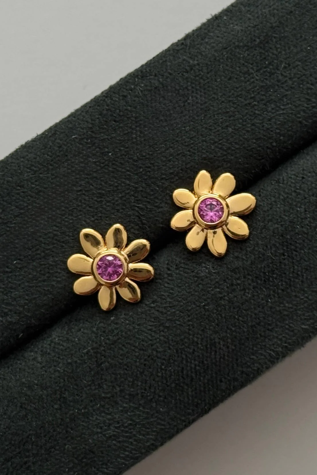 Petit clou de fleur avec une pierre de couleur rose Hypoallergénique Sans nickel et sans plomb Matériau : Laiton plaqué or 18 carats (10 fois plus épais qu’un plaquage or normal) Placage : 0,5 micron avec revêtement électronique pour une utilisation à long terme Taille : 10 mm