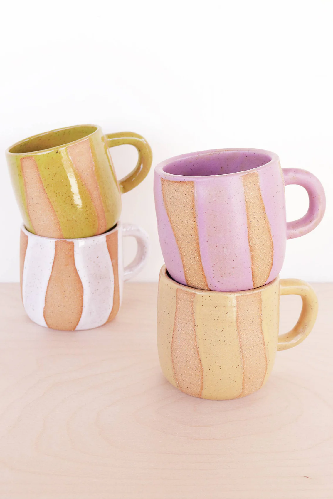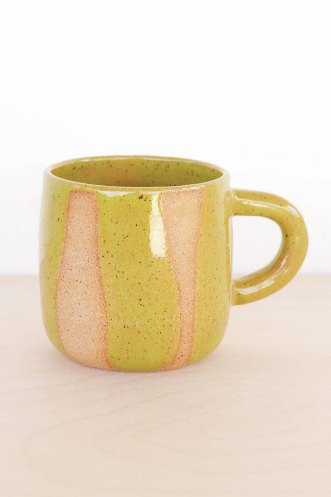 Tasse en céramique de taille moyenne, créée à partir d’une argile grès mouchetée qui ajoute de la dimension et de la texture à la pièce finie.