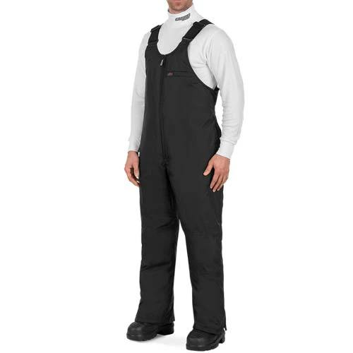 • Bretelles ajustables. • Jambières internes étanches. • Poche utilitaire à la poitrine doublée de nylon robuste. • Fermetures-éclair à double curseur pleine longueur de chaque côté.